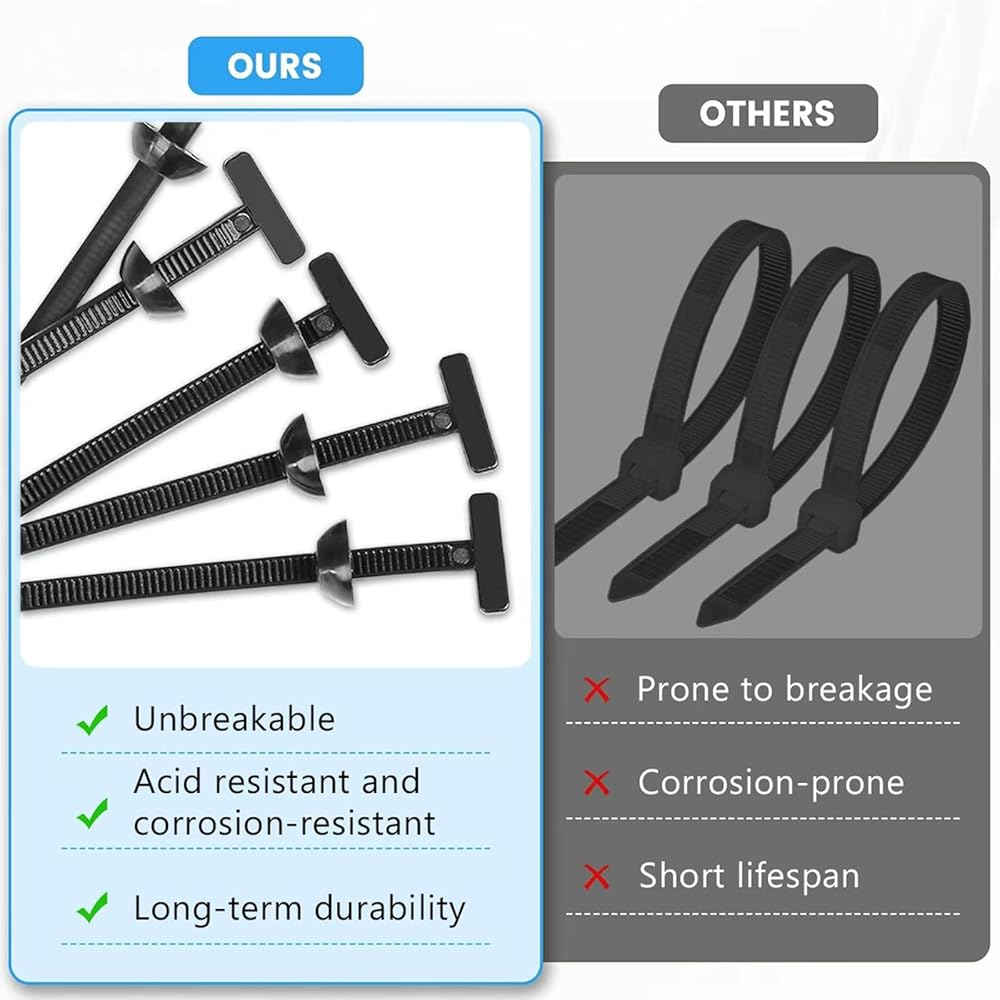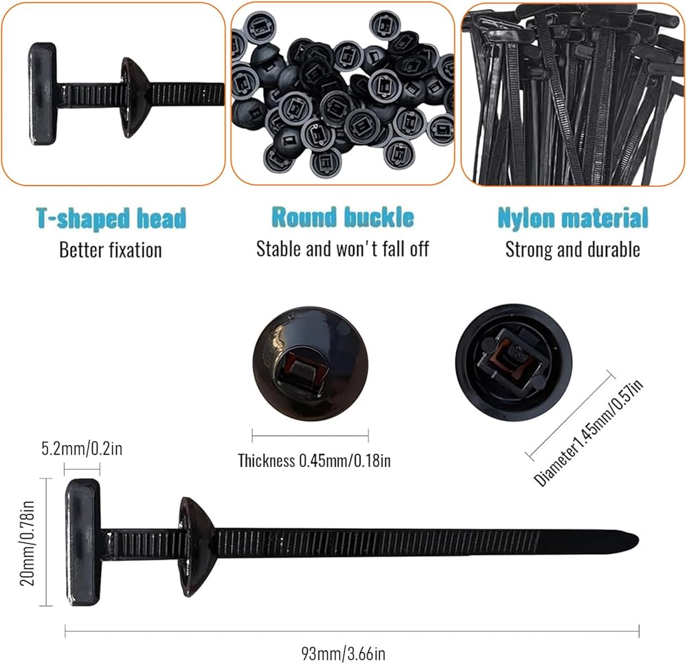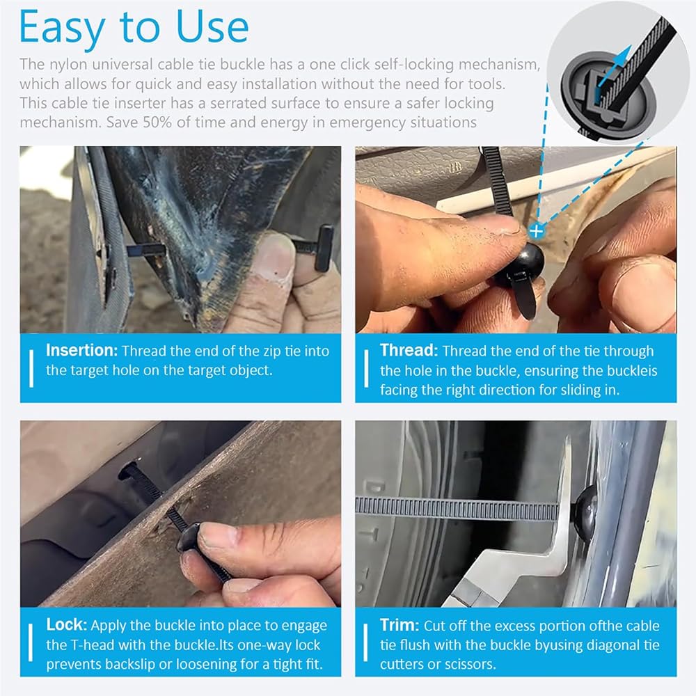 هيكل متين من النايلون: ربطات كابل من النايلون عالي القوة المضاد للشيخوخة، هذه الروابط ذات السحاب تقاوم الحرارة والأشعة فوق البنفسجية والرطوبة وروابط بسحاب لمشابك سحاب مصد السيارة. بمجرد إغلاقها، تبقى ثابتة دون انزلاق، وهي مثالية للبيئات القاسية طويلة الأمد