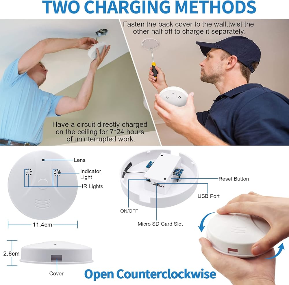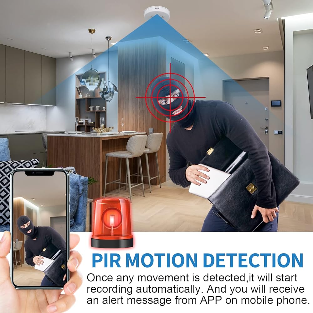 كشف الحركة: مع وظيفة كشف الحركة الذكية، ستقوم كاميرا كاشف الدخان بكتابة البيانات لترسل لك تنبيهات لقطة الشاشة في الوقت الحقيقي على تطبيقك مباشرة عندما تكتشف أي حركة مشبوهة في نطاقها.