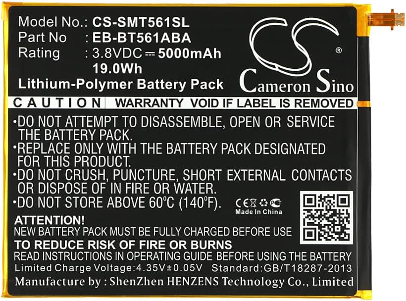 بطارية 5000 مللي أمبير/3.8 فولت متوافقة مع Samsung Galaxy Tab E Nook Edition 9.6، SM-T560، SM-T561، SM-T565، تناسب P/N: EB-BT561ABA، EB-BT561ABE