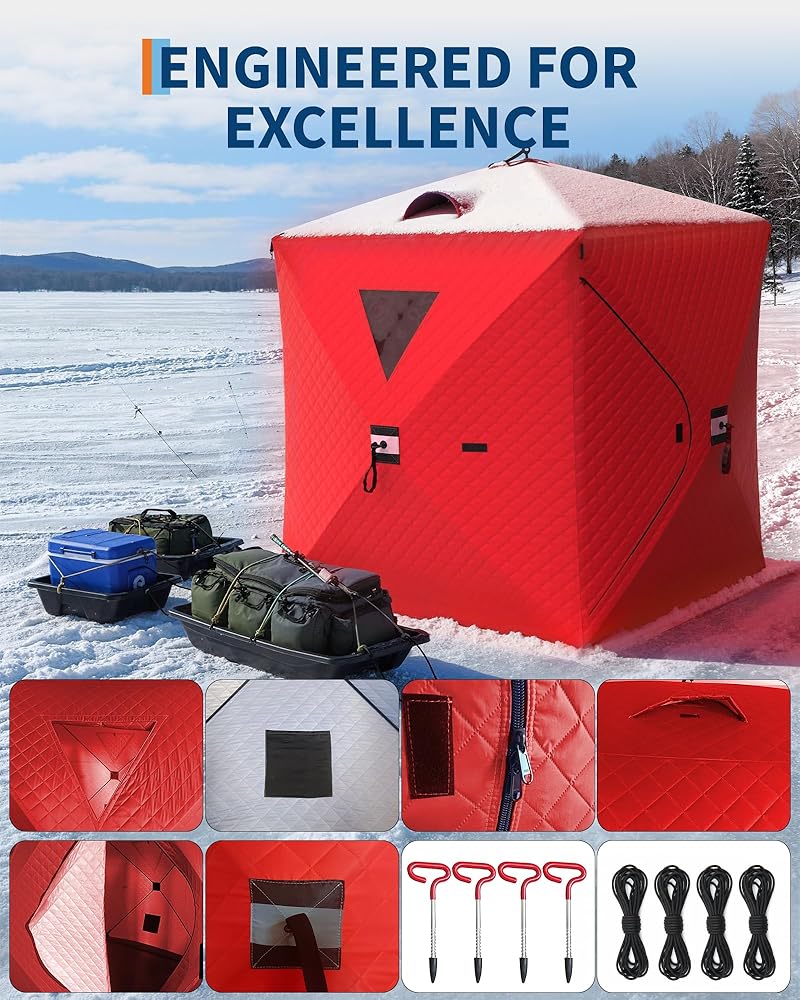 Professional Angler Ready: Equipped with commercial-grade ice anchors, reinforced tie-downs, and a heavy-duty carrying case, this complete shelter system delivers professional performance right out of the packaging.
