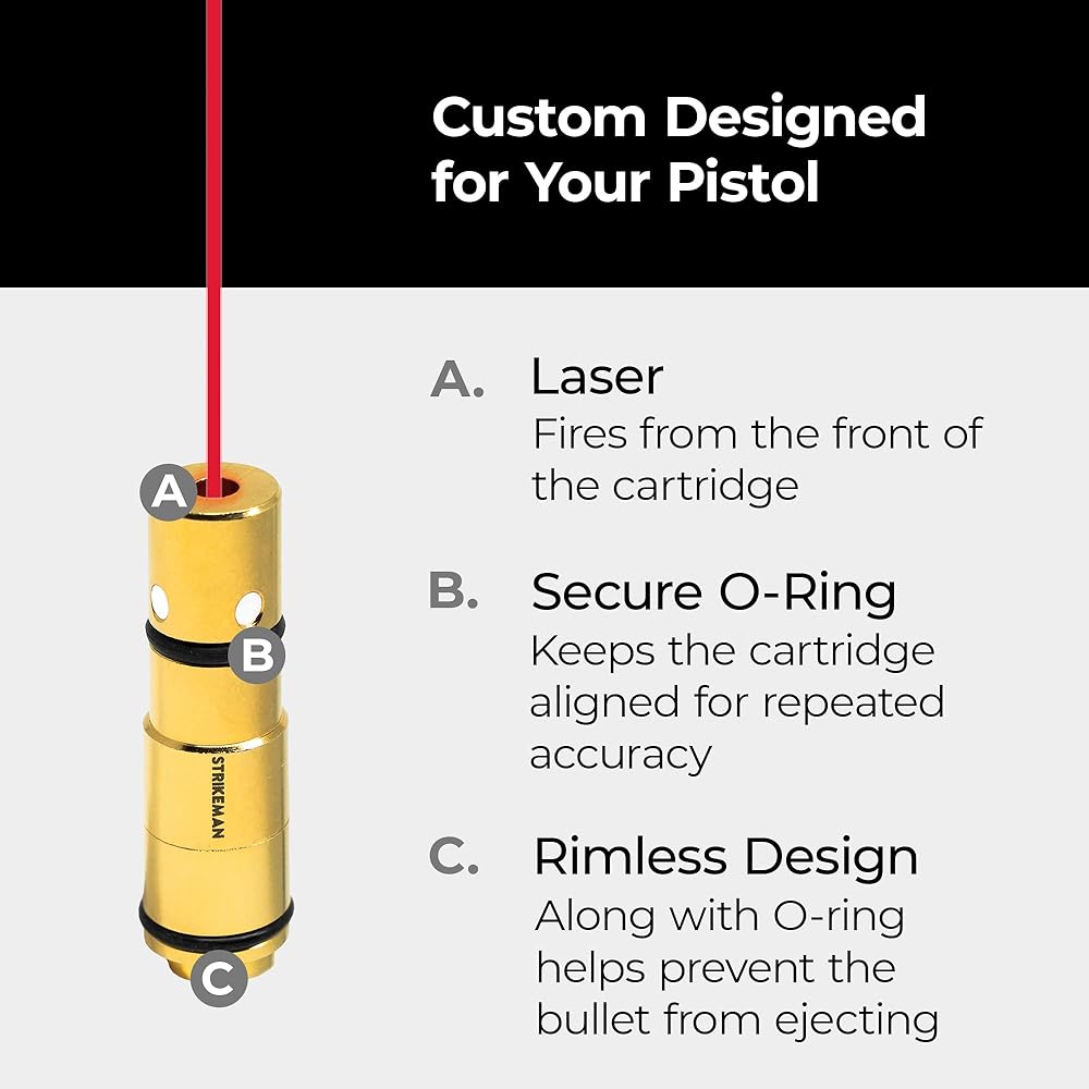 خرطوشة تدريب ليزر Strikeman Dry Fire - رائعة لممارسة الرماية على الهدف باستخدام المسدسات، مصنوعة لنظام تدريب الأسلحة النارية - خرطوشة ليزر حمراء فقط، عيارات متعددة