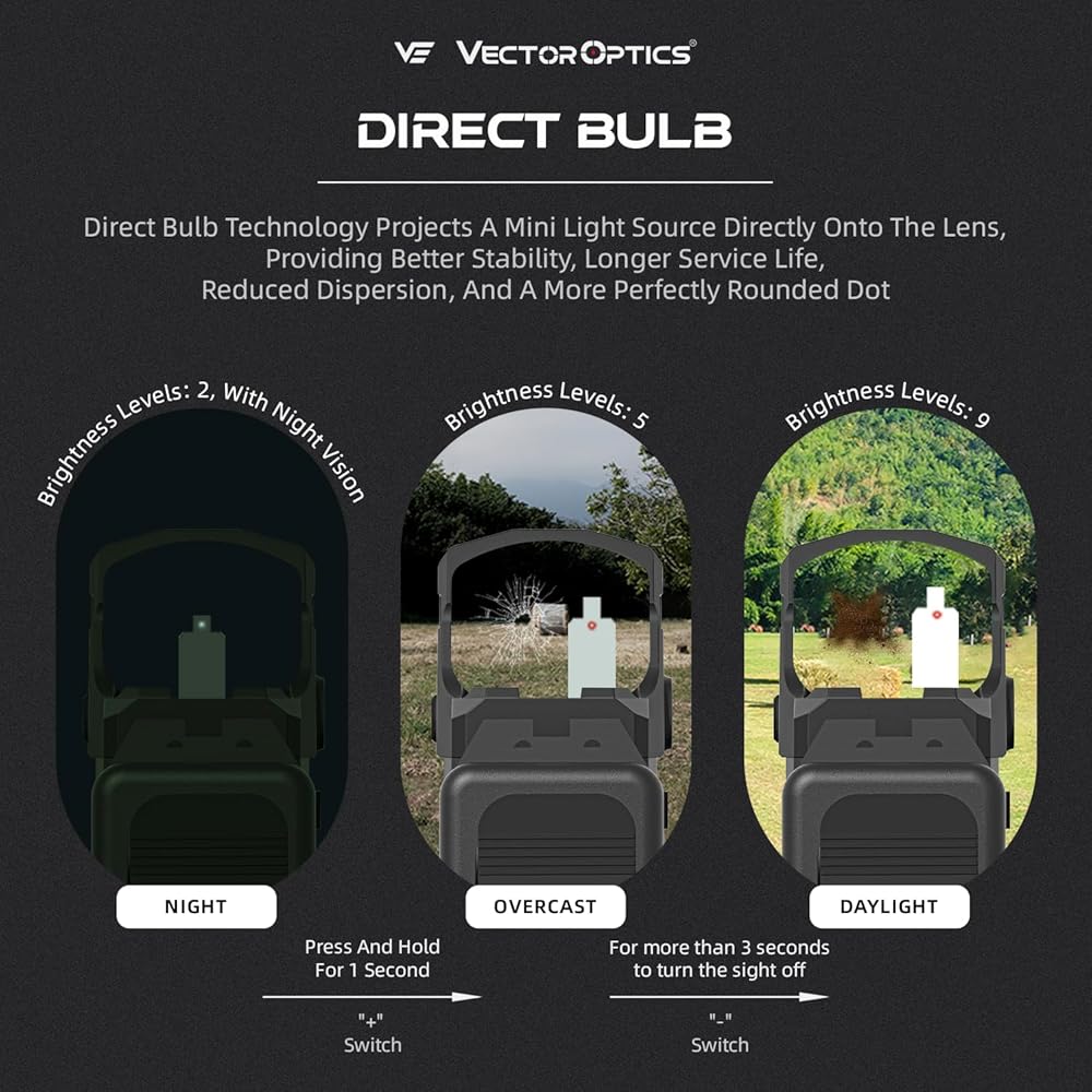 【9 إعدادات سطوع ووضعين NV للدقة في أي ضوء】- 6 MOA Red Dot مثالية للاستخدام الدقيق للمسدسات بينما يتوافق وضعا الرؤية الليلية تمامًا مع أجهزة NV للتصويب الدقيق في حالة الإضاءة المظلمة.
