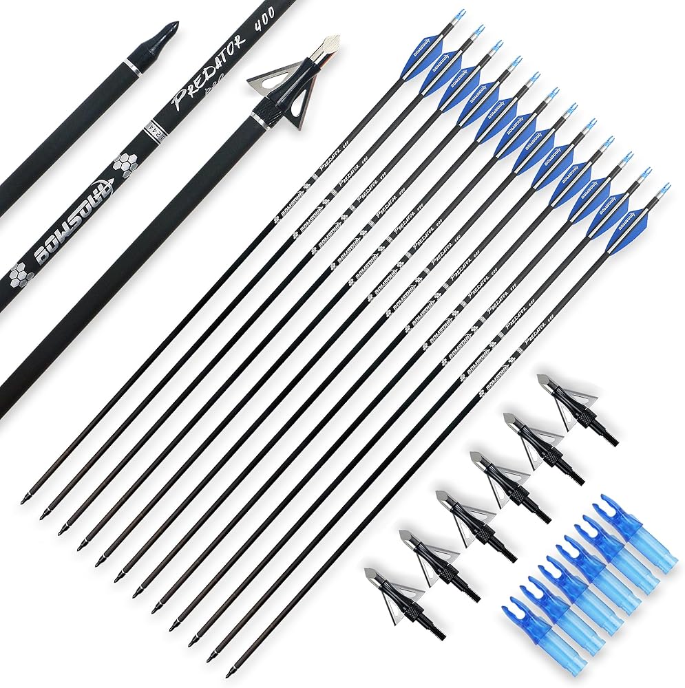 ميزات عمود السهم: عمود سهم من ألياف الكربون. طول السهم 31.5 بوصة. القطر الداخلي: 0.244 بوصة والقطر الخارجي: 0.295 بوصة.