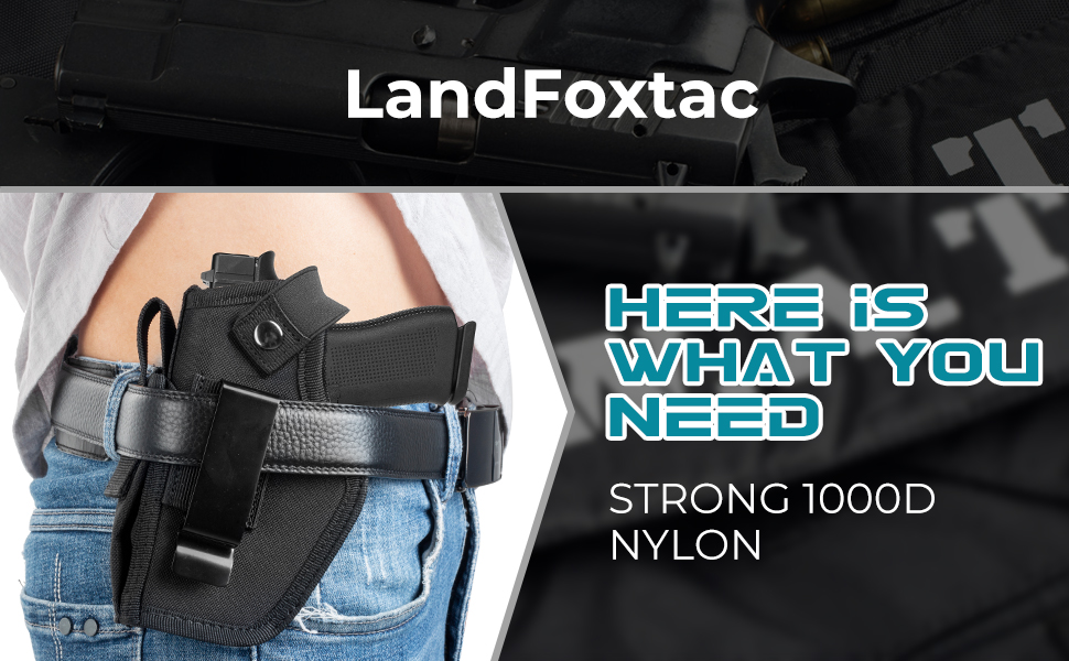 【جودة ممتازة】مصنوعة من النايلون المتين 1000D، حافظة المسدس المخفية من LandFoxtac خفيفة الوزن لكنها متينة. يتميز بوجود درزتين لمزيد من القوة وتصميم مقاوم للماء. يشتمل الحافظة على حقيبة مجلة إضافية للتخزين المريح.