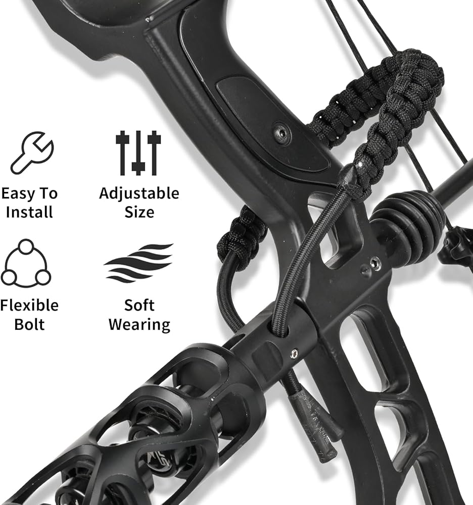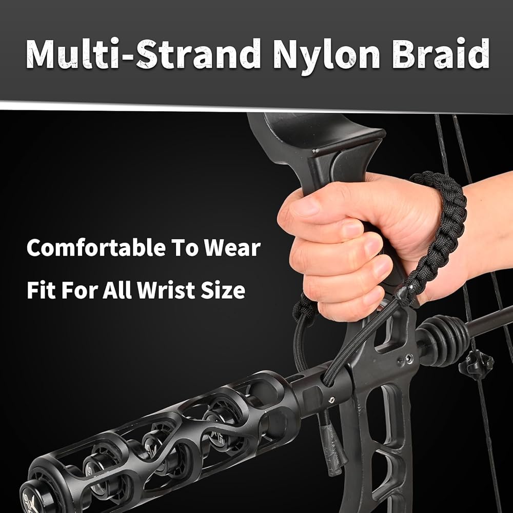 حزام المعصم: مصنوع من سلك نايلون متين ليدوم طويلاً ومقاومة للتآكل، كما أن حمالة المعصم ذات القوس المركب هي إكسسوار عملي وأساسي للرماية لأي رامي.