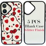 JUSTRY 5 قطع حافظة هاتف فارغة قابلة للطباعة مصممة لهاتف iPhone 16، 6.1 بوصة حافظة مطاطية ناعمة + بريق من الألومنيوم، غطاء واقٍ للهاتف مضاد للانزلاق قابل للطباعة حسب الطلب