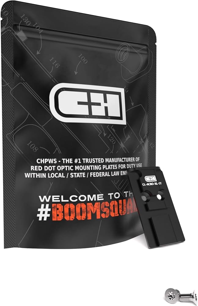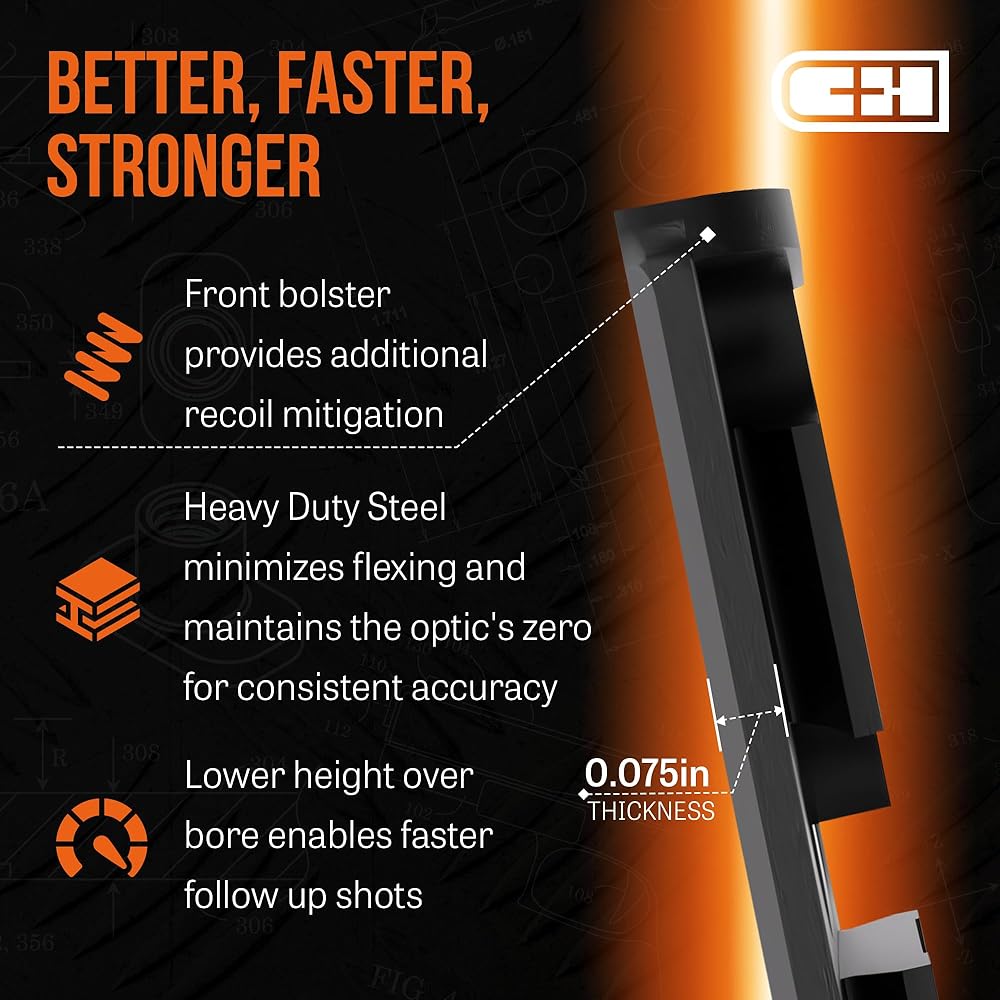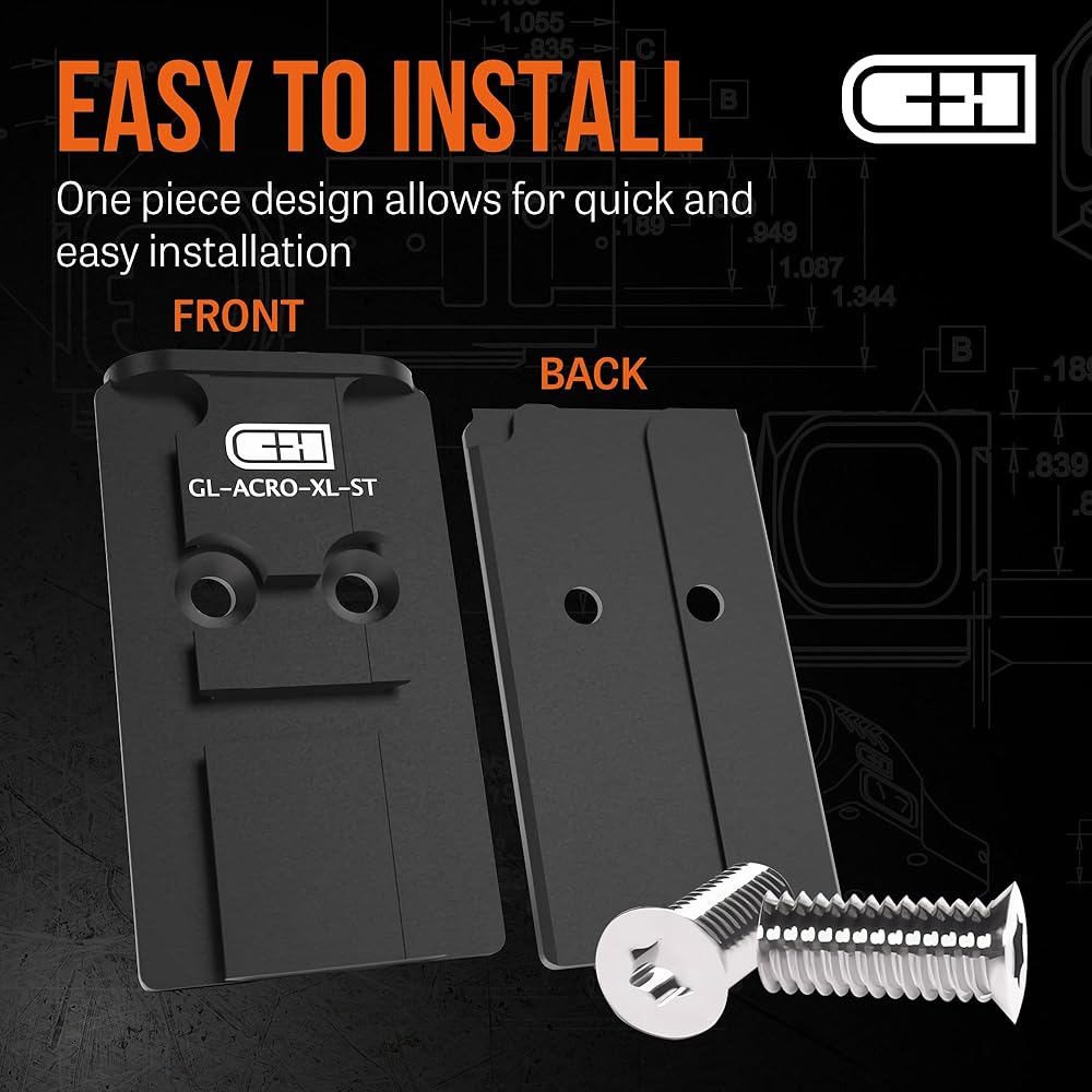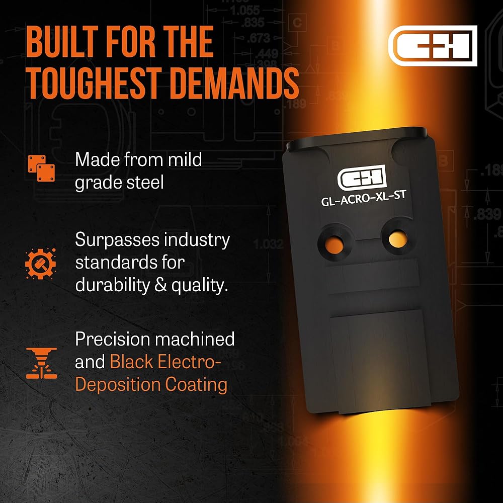 لوحة محول البصريات الدقيقة C+H لجهاز Glock MOS | متوافق مع Aimpoint Acro | الصلب | صنع في الولايات المتحدة الأمريكية