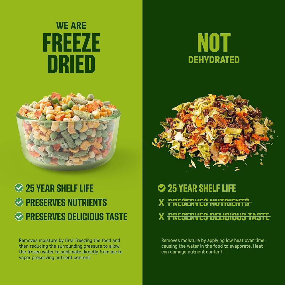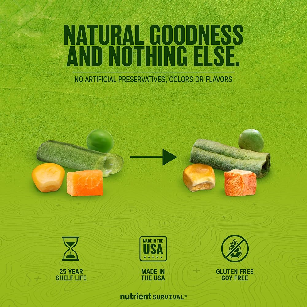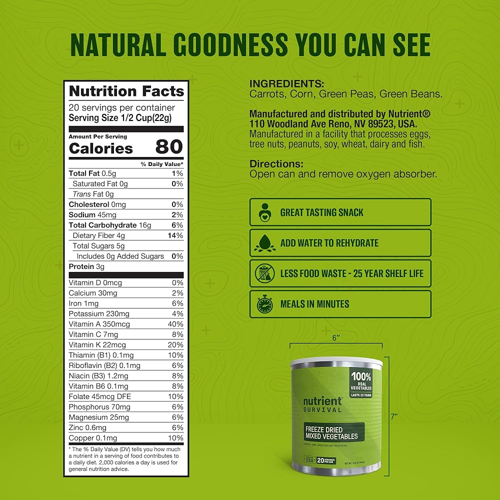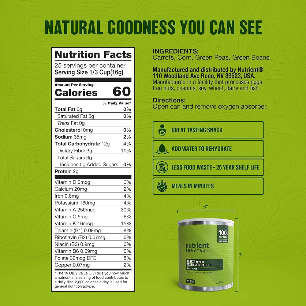 - 🛡️ تخزين طويل الأمد - مدة صلاحية تصل إلى 25 عامًا في علبة رقم 10 متينة يتم التحكم فيها بالأكسجين.