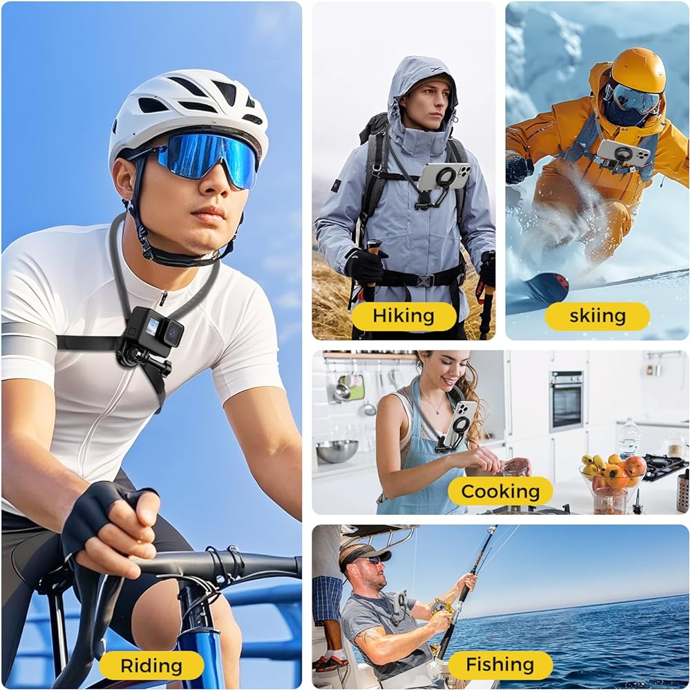 【حامل تثبيت على الرقبة للقطات POV】 مصمم للهواتف الذكية وكاميرات الحركة، هذا الحامل المغناطيسي سريع الفك للرقبة يحرر يديك لالتقاط لقطات POV. يمكنك ربط حزام الصدر المقاوم للصدمات بصدرك لتقليل اهتزاز حامل الهاتف. سواء كنت تقوم بتدوين الفيديو، أو فتح العلبة، أو الطبخ، أو السفر، أو الحرف اليدوية، يمكنك التقاط كل لحظة بتفاصيل غامرة باستخدام حامل الهاتف على الرقبة. يبلغ طول حزام الرقبة 27.5 بوصة (70 سم) عند فرده بالكامل.