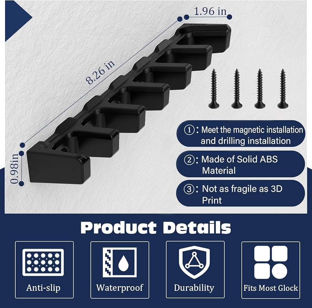 WIDE APPLICABILITY: This pistol mag wall mount is perfect for Glock 17 19 22 23 26 31 32 33 34, ideal for concealed installation where you want it, give your Glock mag more possibilities for display and storage