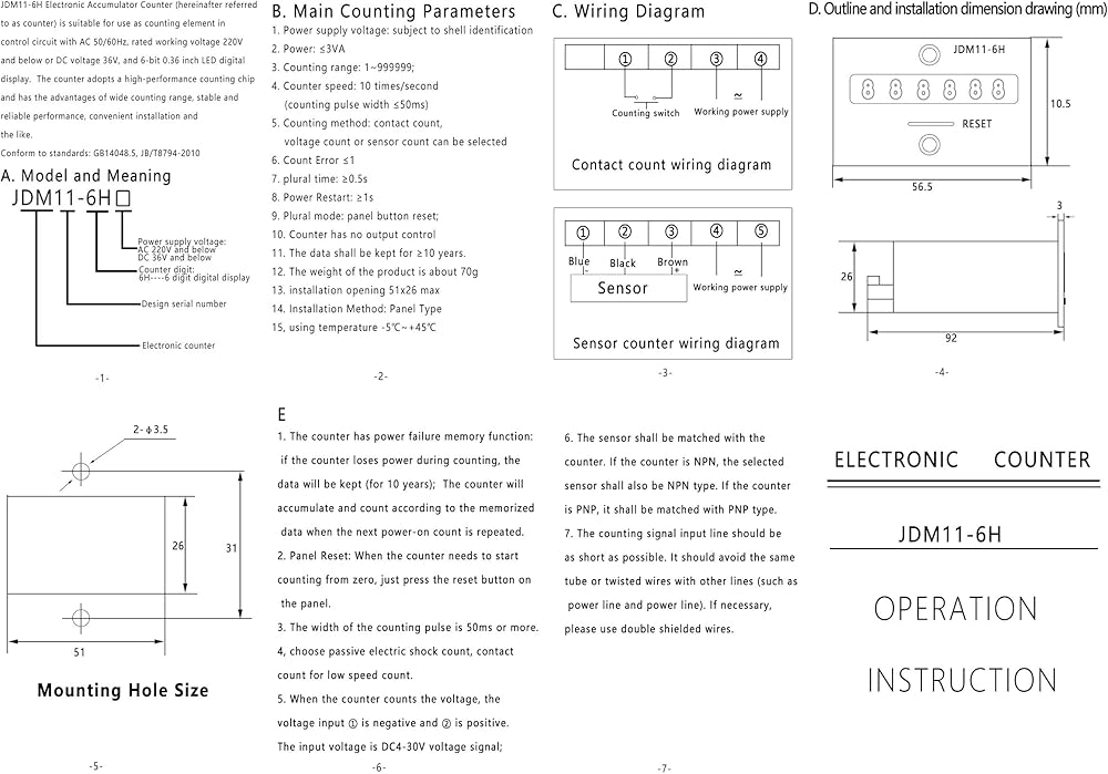 Product Name: Counter ;Power supply: AC110-240V ;Display range:0-999999 ;The meter retain the number automatically when power cut off.