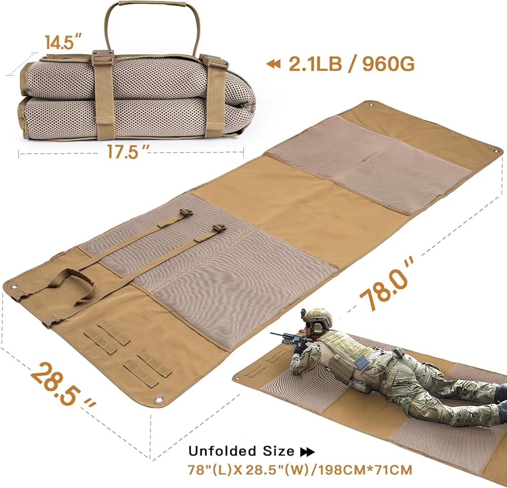 أداء متعدد الاستخدامات - مثالي للرماية أو الصيد أو التدريب التكتيكي. يمكن استخدامها كوسادة أرضية للتخييم، وتوفر العزل من الطين أو الغبار أو الأسطح الرطبة. تضمن الأبازيم سريعة التحرير والحصائر المضادة للانزلاق الثبات في أي بيئة