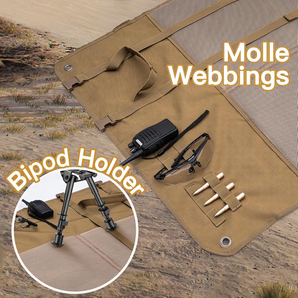 متينة للغاية ومقاومة للطقس - مصنوعة من النايلون والبوليستر عالي التحمل 1000D مع خياطة معززة، تتحمل سجادة الرماية هذه التآكل والرطوبة والظروف الجوية القاسية، مما يجعلها مثالية للصيد أو الاستخدام العسكري أو التدريب في الهواء الطلق.