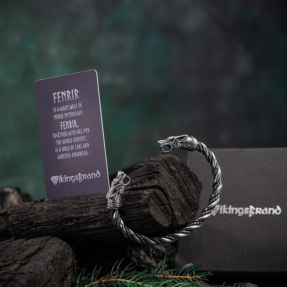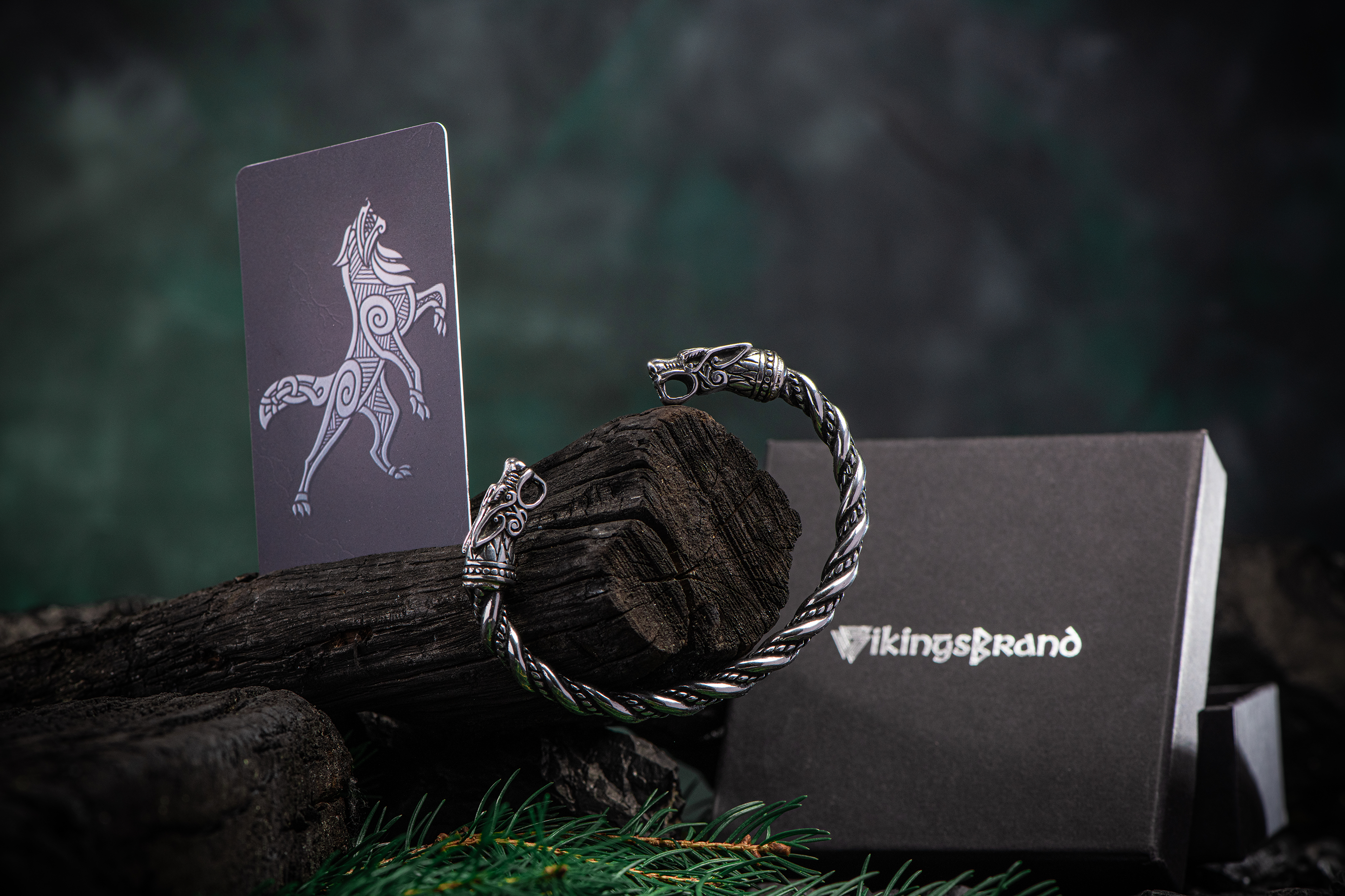 يمثل الذئب في مجوهرات الفايكنج هذه فنرير، وهو ذئب قوي ووحشي، كما أنه ابن الإله لوكي. يُزعم أن فينرير قتل الإله أودين خلال راجناروك. لذا، فإن سوار الذئب هذا هو رمز القوة في الثقافة الإسكندنافية والأساطير.