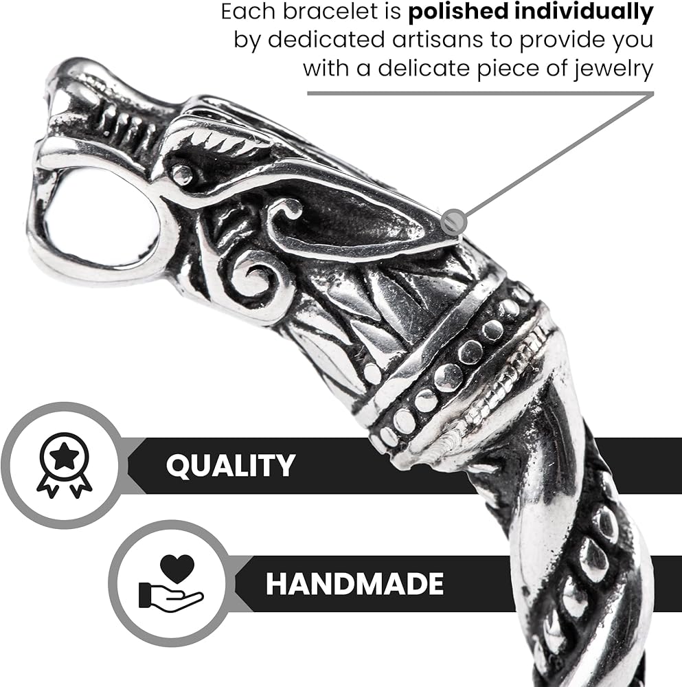 تم تصميم مجوهرات الفايكنج المصنوعة يدويًا وصقلها بشكل فردي على يد حرفيين متفانين لتزويدك بقطعة مجوهرات رقيقة. اللمسة النهائية الملساء والمصقولة بشكل مثالي تجعل أساور الفايكنج هذه آمنة على البشرة، مما يعني عدم حدوث تهيج أو حساسية. ارتديه في أي وقت وأي مكان تريده.