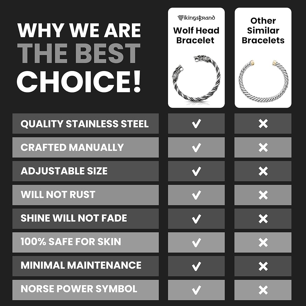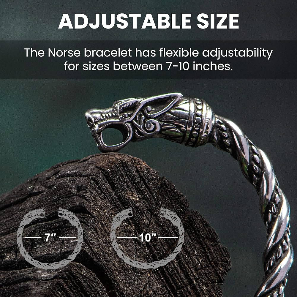 سوار فايكينج المصنوع من الستانلس ستيل قوي ولن يصدأ أو يبهت بمرور الوقت، مما يجعله قطعة مجوهرات مثالية للاستخدام على المدى الطويل. سوار الذئب المرن قابل للتعديل وفقًا لحجم معصمك وهو قوي بما يكفي لتحمل الكثير من الضغط مما يجعله غير قابل للكسر تقريبًا.