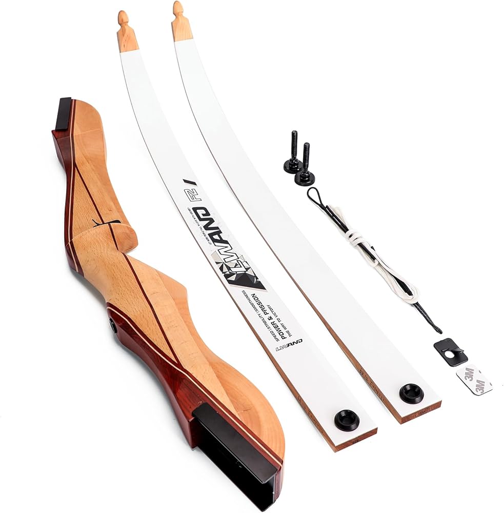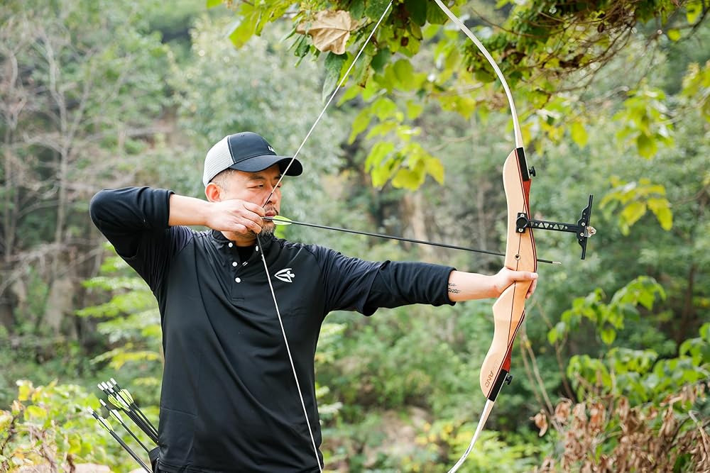 【أداء عالٍ】رافعة القوس المنحنية LWANO مصنوعة من الخشب المصقول عالي الجودة؛ الأطراف مصنوعة من رقائق القيقب والألياف الزجاجية القوية. وتر قوي من البوليستر مكون من 14 ضفيرة. توفير تجربة تصوير مستقرة وقوية ودائمة