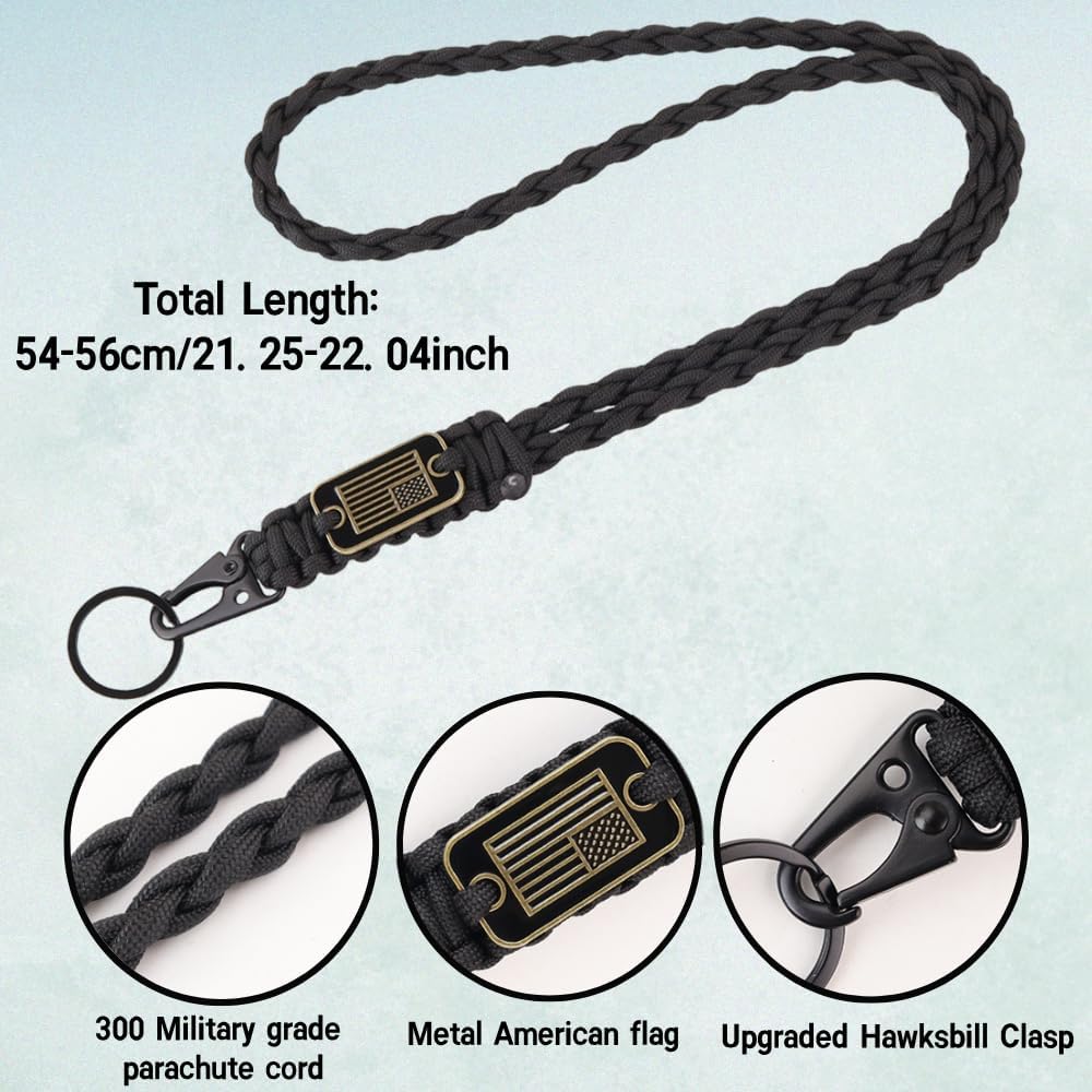 【Patriotic & Functional】: USA Flag Design - Our heavy-duty paracord lanyard features a USA flag design, paying tribute to those who served with honor. Every glance at this tactical lanyard reminds you of the values it represents. Perfect for outdoor enthusiasts and patriotic individuals, it's more than an accessory—it's a statement.