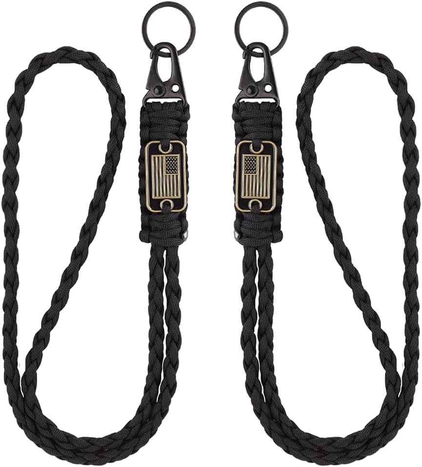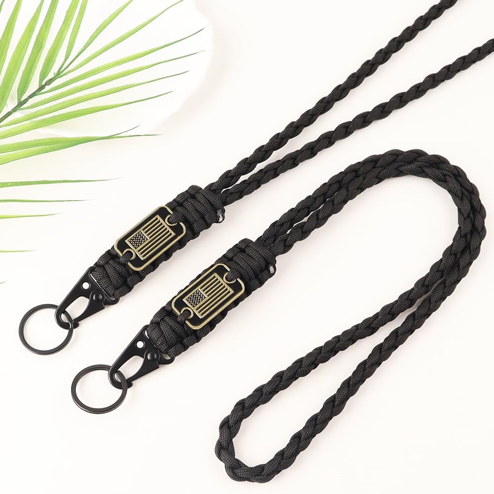 2pcs Durable Heavy Duty Braided Paracord Lanyard Keychains with USA Flag, Parachute Rope Necklace for Outdoor Activities Camera