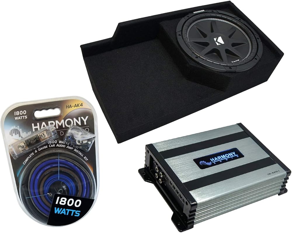 • Compatible with 1988-1998 Chevy CK Silverado Extended Truck Kicker Bundle Comp C10 Single 10 Sub Box Enclosure & Harmony HA-A400.1 Amp