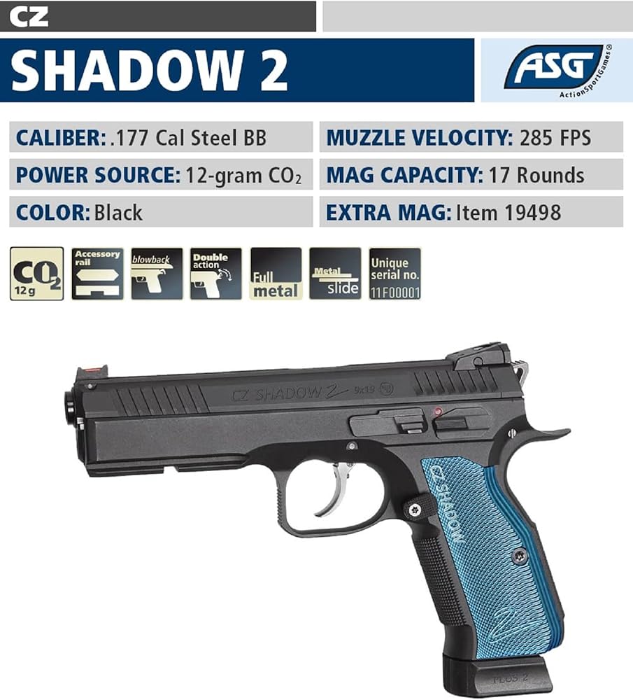 • يعمل الوزن الإضافي والتصميم الأكثر وضوحًا للشريحة على تسهيل إدارة الارتداد ويسمح بالتقاط لقطات أكثر دقة على الهدف. خراطيش ثاني أكسيد الكربون غير متضمنة