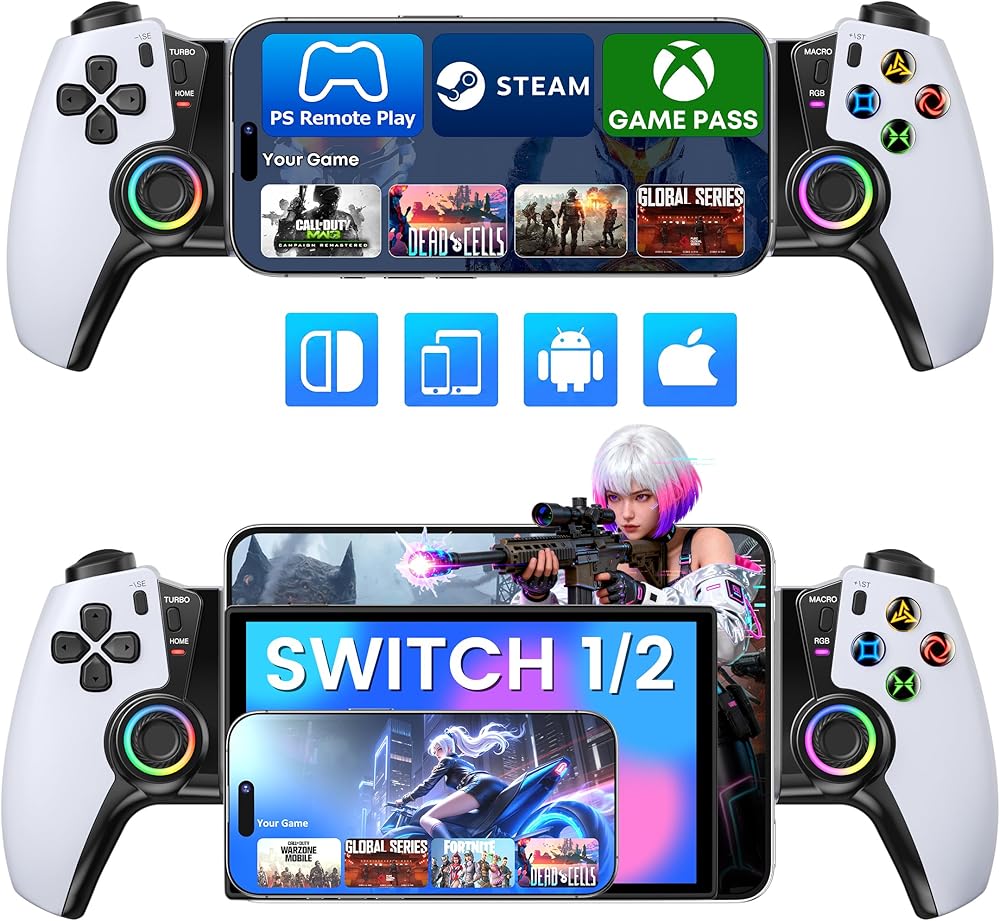 • 【العب بأي ألعاب مدعومة بوحدة تحكم】 تم تصميم وحدة التحكم سويتش 2 للاستمتاع بتجربة ألعاب لا يمكن إيقافها، والعمل مع سويتش 2/سويتش/OLED/أندرويد/آيفون، ودعم جميع خدمات الألعاب السحابية تقريبًا بما في ذلك Xbox Cloud، وSteam Link، وGeForce Now، وMFi Apple Arcade ومئات من ألعاب الهاتف المحمول الشهيرة مثل Call of Duty وRoblox وFortnite وما إلى ذلك. (الألعاب التي لا يمكن تشغيلها إلا مع Joy Con غير مدعومة. تدعم الحركة الاستشعار وتسجيل لقطة الشاشة على Switch لا يدعم Amiibo.