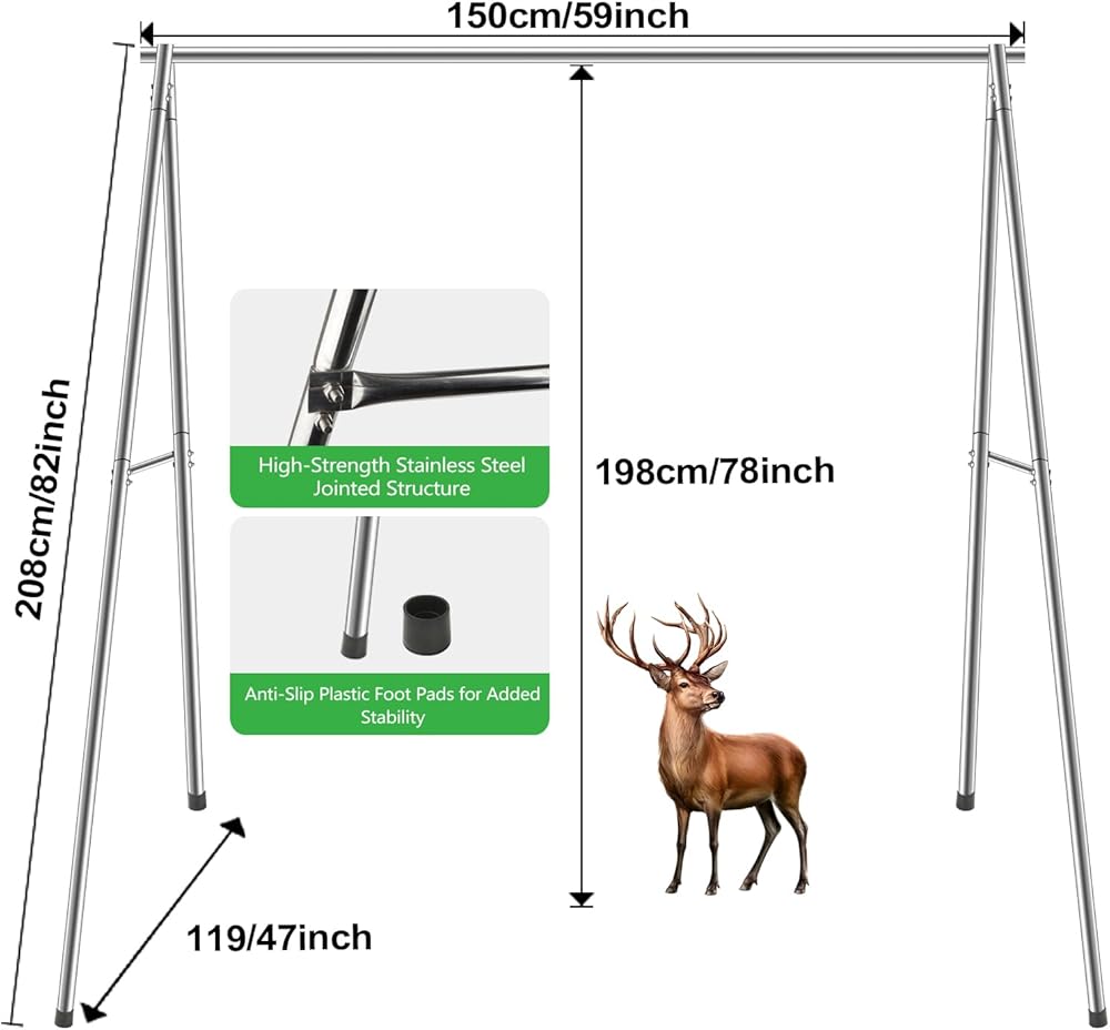 • تصميم محمول وموفر للمساحة: صغير الحجم وخفيف الوزن، يمكن طي شماعة الغزلان لأسفل لسهولة النقل والتخزين. مثالي لرحلات الصيد أو الكبائن أو الاستخدام الخارجي، يوفر رف سلخ الغزلان حلاً عمليًا أينما يأخذك صيدك.