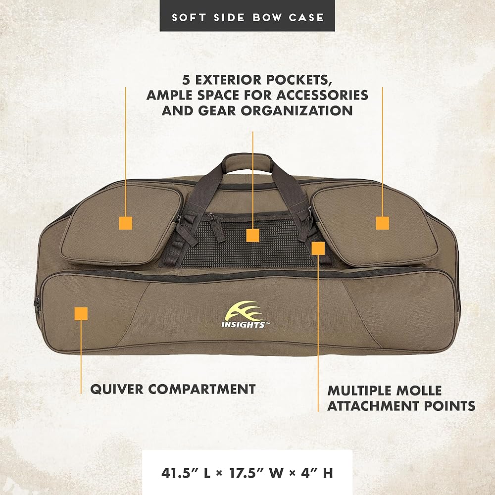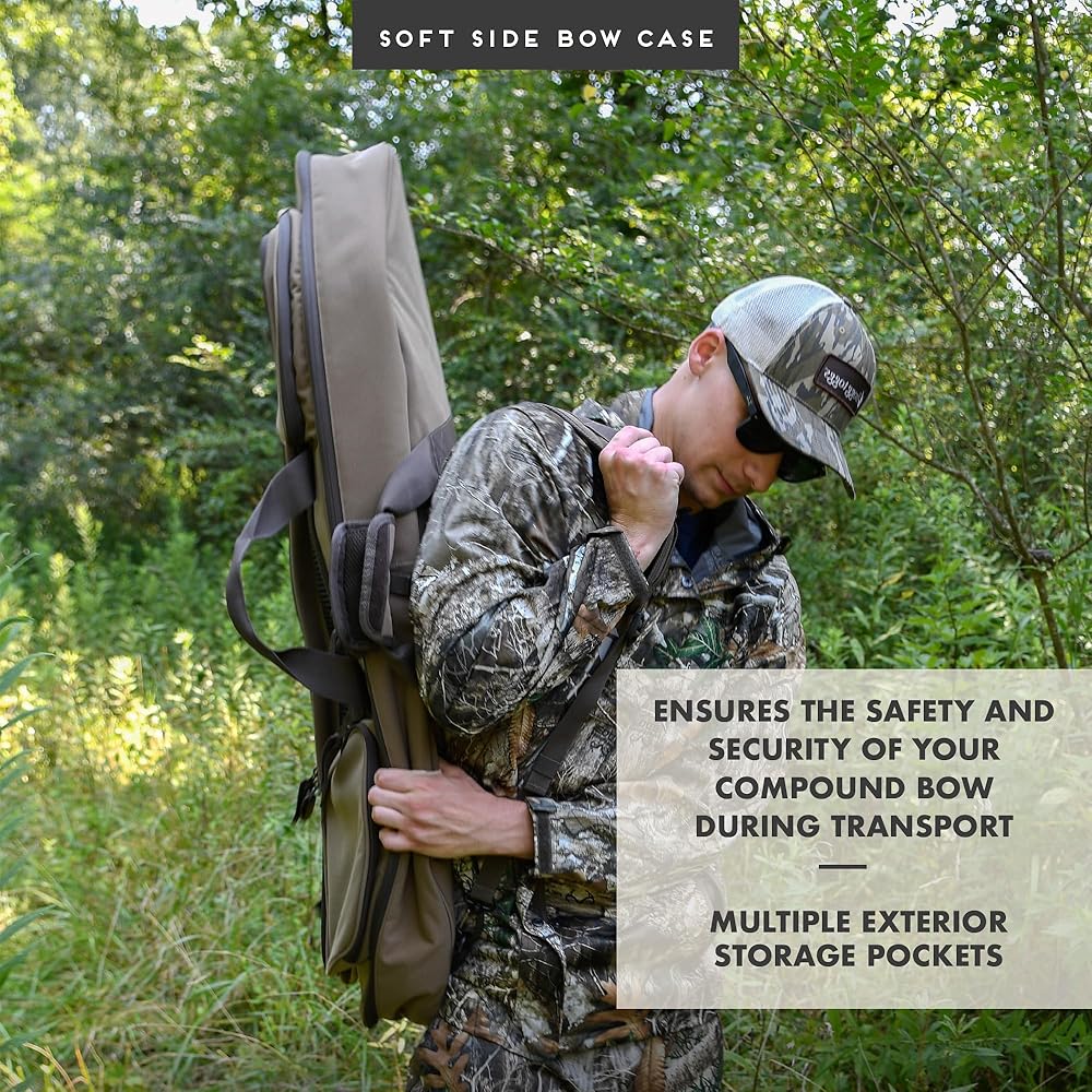 المميزات - أحزمة داخلية قابلة للتعديل تلائم معظم الأقواس المركبة لإبقائها في مكانها بشكل مريح. تشتمل العلبة على 5 جيوب تخزين خارجية توفر مساحة واسعة للملحقات وتنظيم المعدات