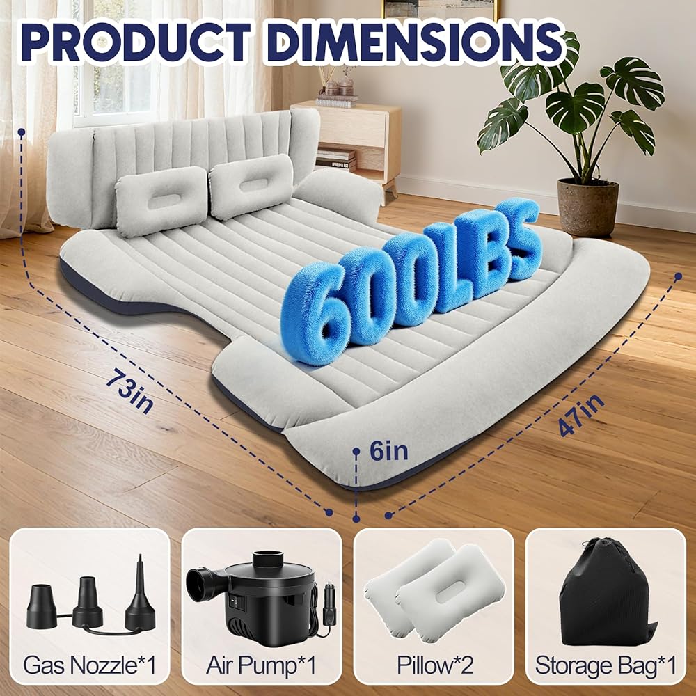 سعة وأبعاد رائعة للوزن: يتمتع هذا السرير القابل للنفخ للسيارة بسعة وزن تصل إلى 600 رطل، ويستوعب شخصين في نفس الوقت. تنام عائلتك على سرير السيارة لسيارات الدفع الرباعي وتستمتع بالوقت الممل على الطريق. الحجم (73 × 47 بوصة) موجود بشكل مثالي في صندوق معظم سيارات الدفع الرباعي، كما يسمح تصميم الدعم الجانبي ثلاثي الأبعاد على كلا الجانبين لك ولشريكك بالاستمتاع بنوم مريح أثناء الليل أثناء السفر.