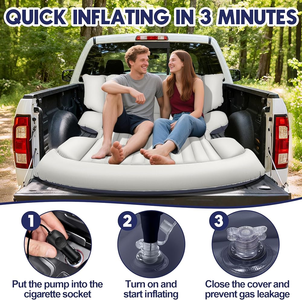 إعداد مريح ومحمول: تأتي مرتبة السفر القابلة للنفخ مع مضخة هواء للسيارة، والتي يمكن توصيلها بولاعة السجائر لتضخيمها بسرعة عندما تكون في الهواء الطلق، ويمكن شحن مرتبة الهواء القابلة للنفخ لسيارات الدفع الرباعي بالكامل في غضون دقيقتين. مجهزة بفوهة هواء مزدوجة الطبقة، ويمكن نفخها بسرعة وسهولة! عندما لا تكون قيد الاستخدام، يمكن تفريغها بسرعة من خلال الفتحات الواسعة. بعد طيها، سيتم وضعها في حقيبة تخزين الهدايا، وهي مريحة للحمل