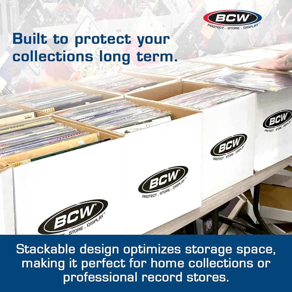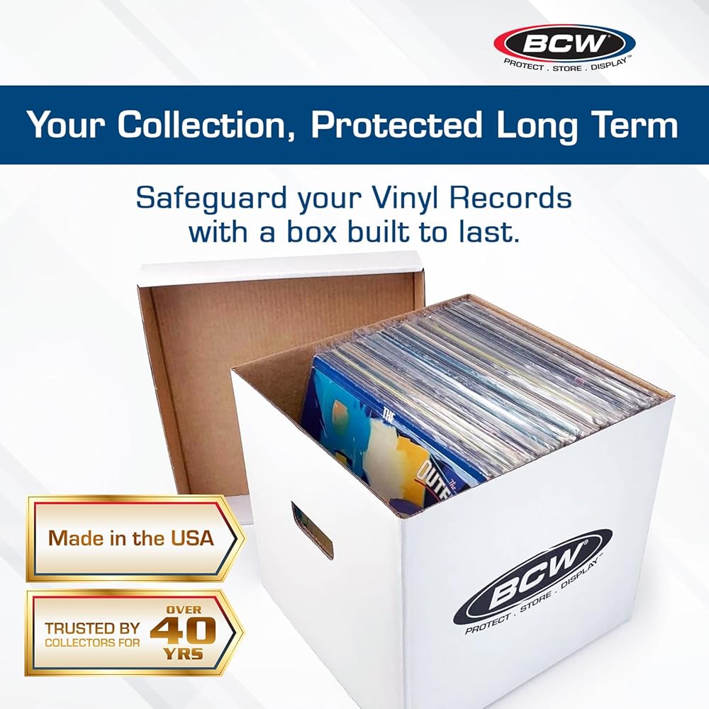 • حماية دائمة للسجلات: قم بحماية الفينيل الثمين الخاص بك باستخدام صندوق تخزين السجلات عالي التحمل من BCW. مصنوع من الورق المقوى المموج الأبيض القوي وتم تصنيفه بوزن 200 رطل. يوفر كل صندوق حماية أرشيفية آمنة ضد التلف الناتج عن التراص أو النقل أو التخزين على المدى الطويل.