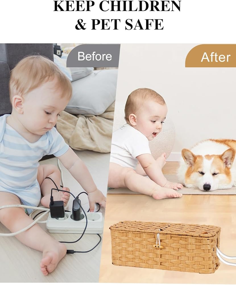 𝐊𝐢𝐝- 𝐚𝐧𝐝 𝐏𝐞𝐭-𝐟𝐫𝐢𝐞𝐧𝐝𝐥𝐲 𝐃𝐞𝐬𝐢𝐠𝐧: يتميز صندوق إدارة الأسلاك لدينا بغطاء ذكي قابل للطي مع مشبك آمن. بمجرد إغلاقه، فإنه يحافظ على الأصابع والأقدام الصغيرة الفضولية بعيدًا بأمان عن المخاطر الكهربائية، ويمكنه عزل الغبار بشكل فعال، مما يضمن بيئة منزلية أكثر أمانًا.