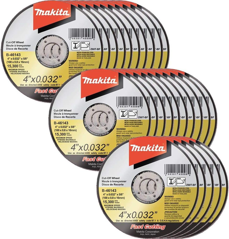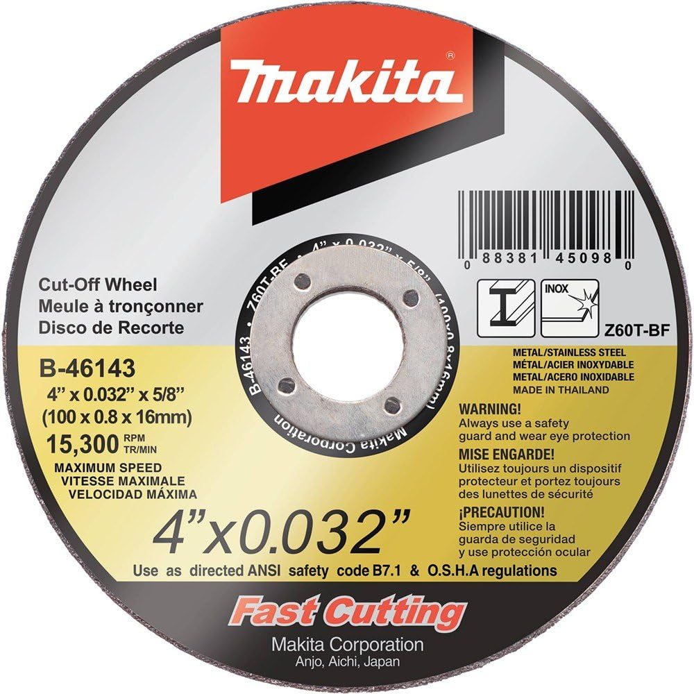 ماكيتا عجلات القطع الرفيعة للغاية بسمك 0.32 انش وهي أرفع بنسبة 20% من معظم العجلات المنافسة. هذه العجلات مثالية لعمل قطع في الأنابيب المعدنية والستانلس ستيل والصفائح والقنوات
