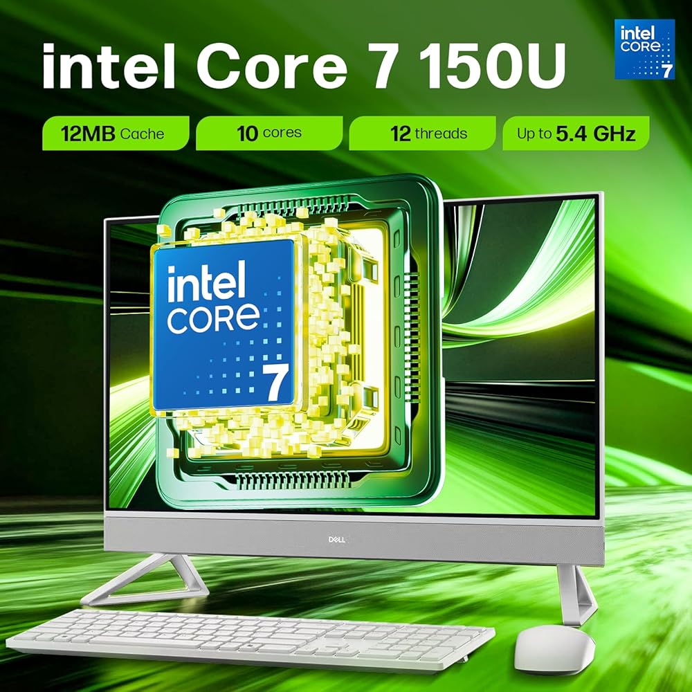 🚀 Powerful performance with an Intel Core 7 processor and NVIDIA GeForce MX570A: The Dell Inspiron all-in-one desktop PC features the latest Intel Core 7 150U processor (10 cores, 12 threads, 12MB cache, and a maximum turbo frequency of 5.4GHz). Combined with an NVIDIA GeForce MX570A discrete graphics card, it delivers smooth multitasking and crisp visuals. This combination provides powerful performance for work, creative projects, and entertainment