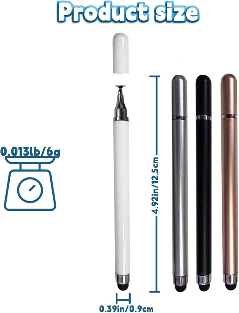 【تصميم قلم 2 في 1】تتميز أقلام المصممين هذه لشاشات اللمس بتصميم 2 في 1، مع طرف مطاطي من أحد الطرفين وطرف قرص شفاف من الطرف الآخر، مع غطاء واقي. يوفر الطرف المطاطي وطرف القرص تجربتين مختلفتين للمس. مصنوع من سبيكة خفيفة الوزن، قلم القلم يزيل متاعب الاتصال بالبلوتوث والشحن؛ إنه جاهز للاستخدام بمجرد إخراجه من الصندوق، ومريح في الإمساك، ومتين.
