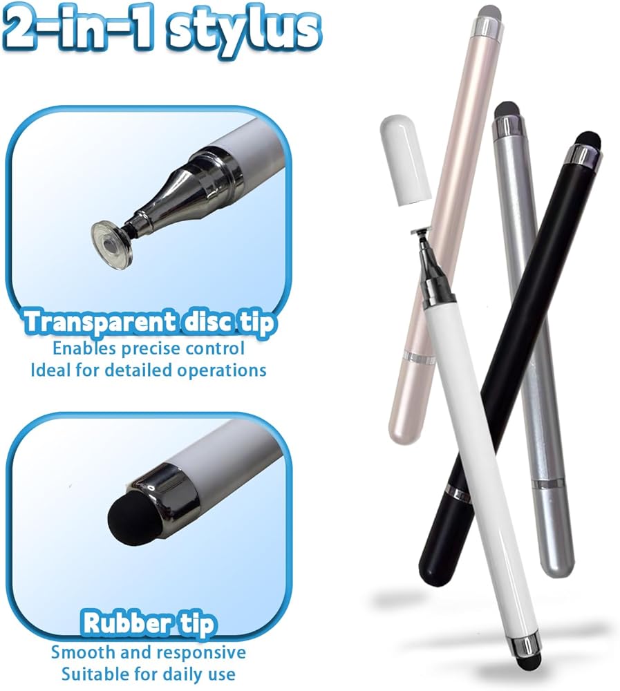 【جودة عالية ودقة عالية】يتميز أحد طرفي القلم بطرف شفاف ومرن على شكل قرص، مما يسمح لك برؤية الموقع المحدد بدقة وضمان اللمسات الدقيقة في كل مرة. كما أنه يتوافق بمرونة مع الشاشة، ولا يترك أي فجوات أو علامات على الجهاز، مما يوفر قدرًا أكبر من المرونة والدقة. يحتوي الطرف الآخر على طرف مطاطي ناعم لن يخدش الشاشة أو يترك بصمات الأصابع مثل الأصابع.