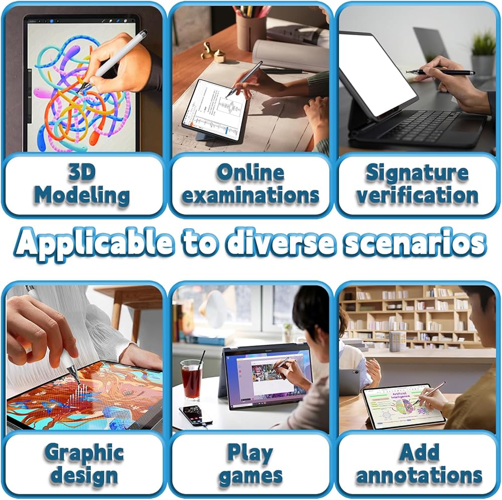 【مناسبة لسيناريوهات متعددة】 تتوافق أقلام القلم العالمية هذه لشاشات اللمس مع جميع الأجهزة التي تعمل باللمس، مثل الهواتف الذكية ذات السعة، والأجهزة اللوحية، وأجهزة الكمبيوتر المحمولة التي تعمل باللمس، كما أنها متوافقة مع أنظمة التشغيل السائدة (مثل Google وAndroid وMicrosoft). سواء كان الرسم أو الكتابة أو تدوين الملاحظات أو الألعاب، فإنه يوفر تجربة سلسة، ويلبي الاحتياجات المختلفة في حياتك اليومية.