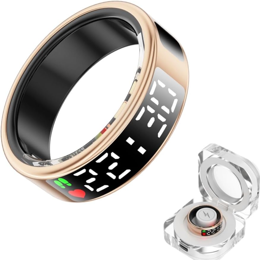 【شاشة LED متعددة الوظائف وزر لمس】تمتع بتجربة إدارة سلسة للجهاز من خلال شاشة LED عالية الوضوح والتحكم باللمس البديهي. بلمسة واحدة فقط، يمكنك مراقبة وقتك وعدد الخطوات ومعدل ضربات القلب والأكسجين في الدم والنوم والبطارية وغيرها من البيانات الأساسية على حلقتك الذكية في أي وقت وفي أي مكان - لا حاجة للتحقق من هاتفك بشكل متكرر. تم تصميم حلقتنا الذكية لتوفير الراحة القصوى، ومثالية للعمل واللياقة البدنية والترفيه.