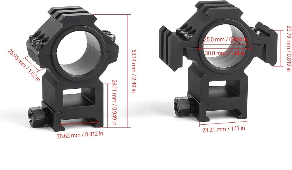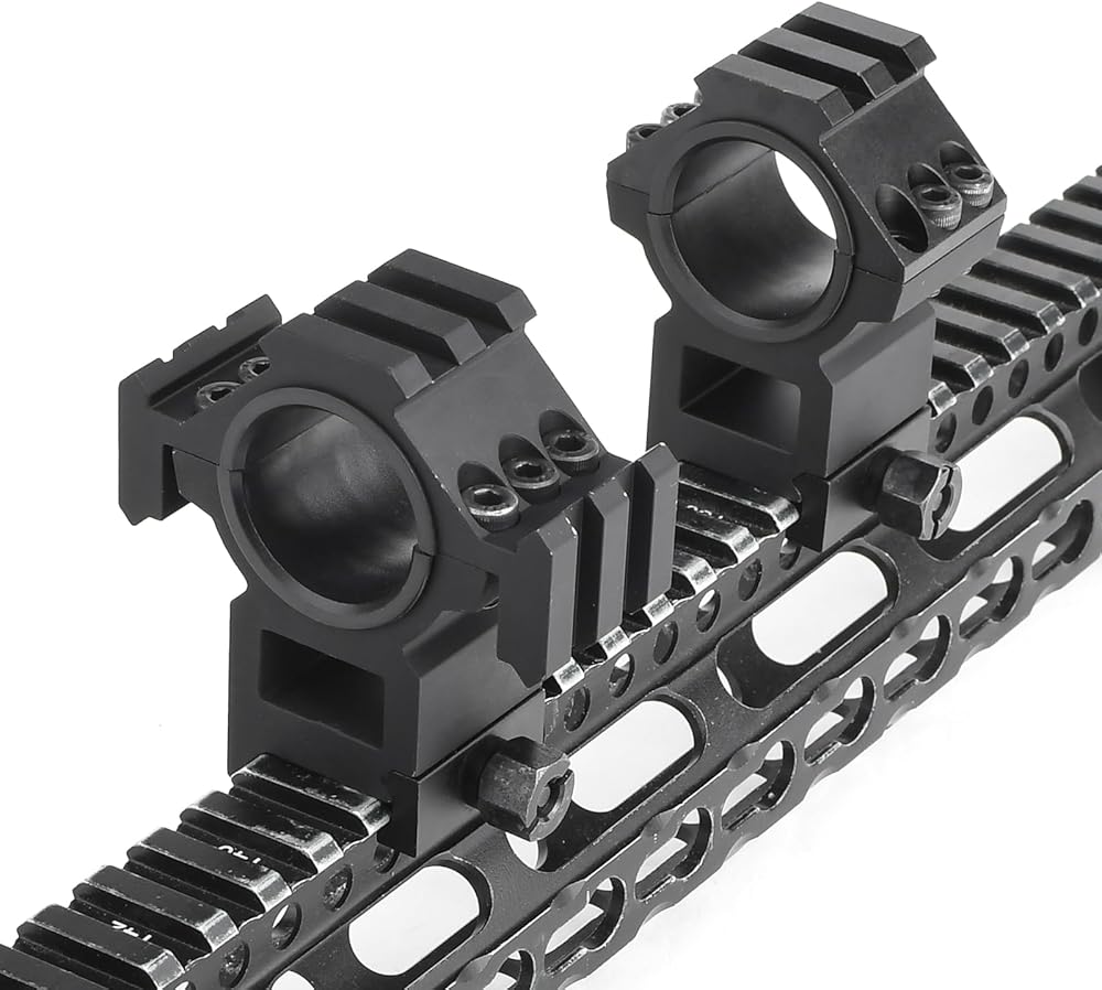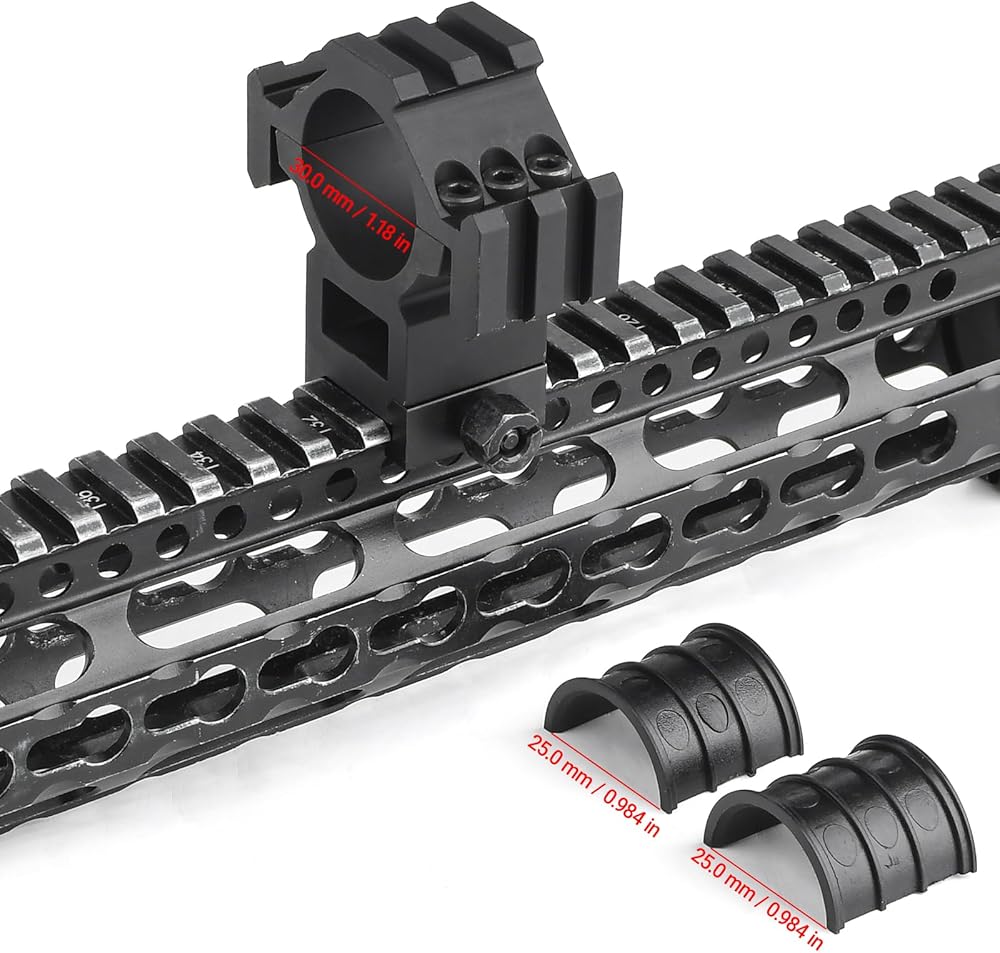 • توافق واسع: حامل نطاق أسود مناسب تمامًا لأنبوب نطاق 30 مم / 25 مم. يناسب حامل النطاق قضبان Picatinny أو قضبان Weaver مقاس 20 مم