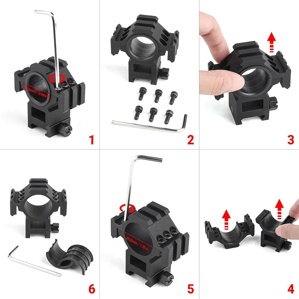 • جودة عالية: حلقات تثبيت عالية الجودة مصنوعة من سبائك الألومنيوم الفضائية مع لمسة نهائية صلبة سوداء مؤكسدة لمقاومة التآكل/التآكل وعمر خدمة أطول