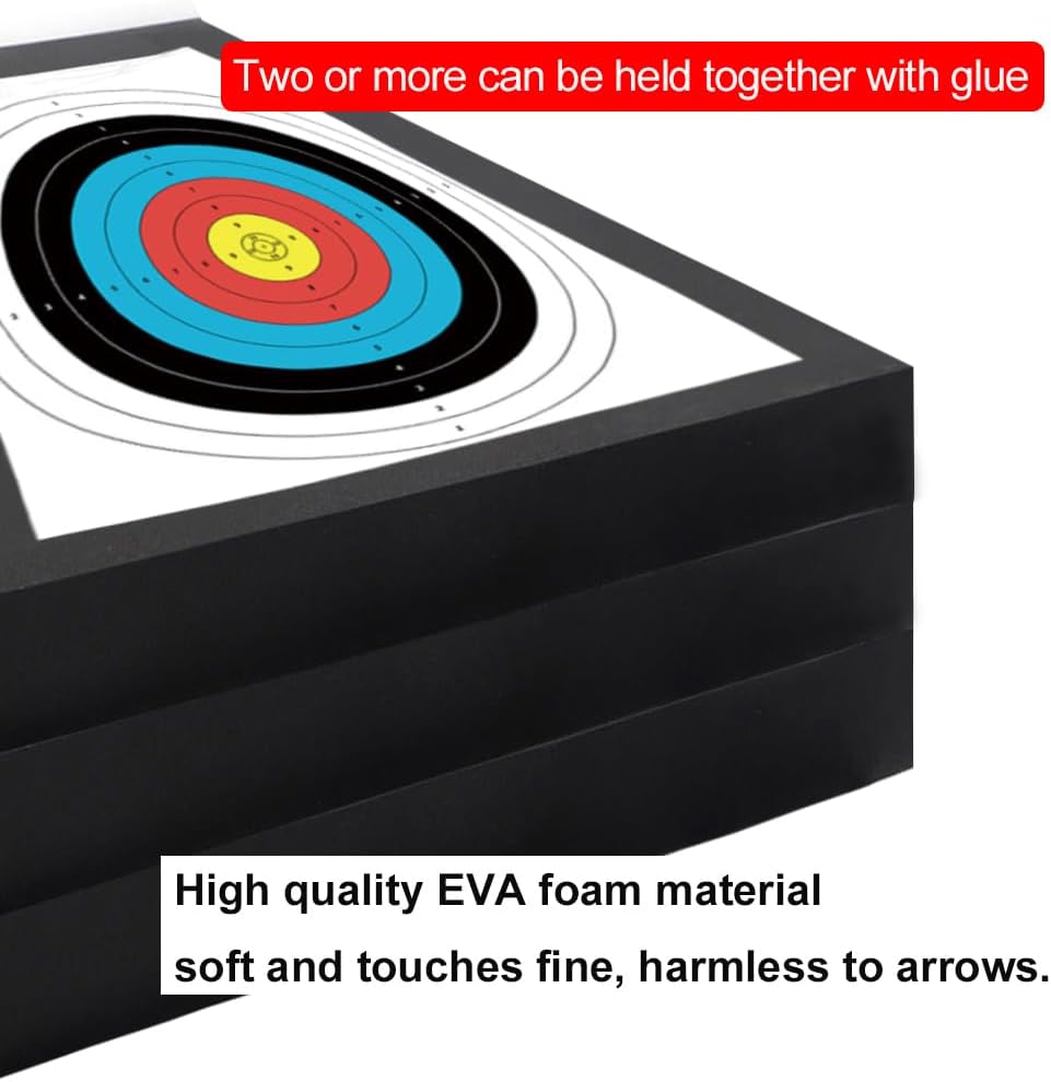 يتم استخدام هدف إسفنج EVA للقوس الذي يتراوح وزنه بين 25 و40 رطلاً، وإذا كان وزن القوس الخاص بك يزيد عن 40 رطلاً، فنوصي بشراء قطعتين لتصنيعهما معًا باستخدام الغراء. إذا كان وزن القوس الخاص بك يزيد عن 50 رطلاً، فإننا نوصي بـ 3 قطع وإذا كان وزنك يزيد عن 60 رطلاً، فنوصي بـ 4 قطع.