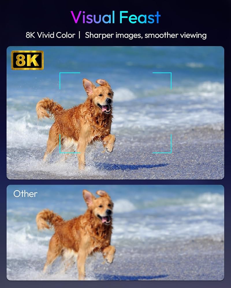 【Android TV Box 4K 8K & Screen Mirroring】يتوافق جهاز Android TV Box 2025 مع ما يصل إلى 8K ويدعم إخراج 4K، مما يوفر صورًا واضحة ومفصلة لتجارب صوتية ومرئية غامرة وتفاعلات ذكية على حد سواء. تعمل وظيفة انعكاس الشاشة بسلاسة دون تخزين مؤقت، وتتميز بتوافق قوي. فهو يقدم دقة فائقة واستنساخًا للألوان الواقعية، مما يعزز بشكل فعال تجربة الشاشة الكبيرة الخاصة بك.