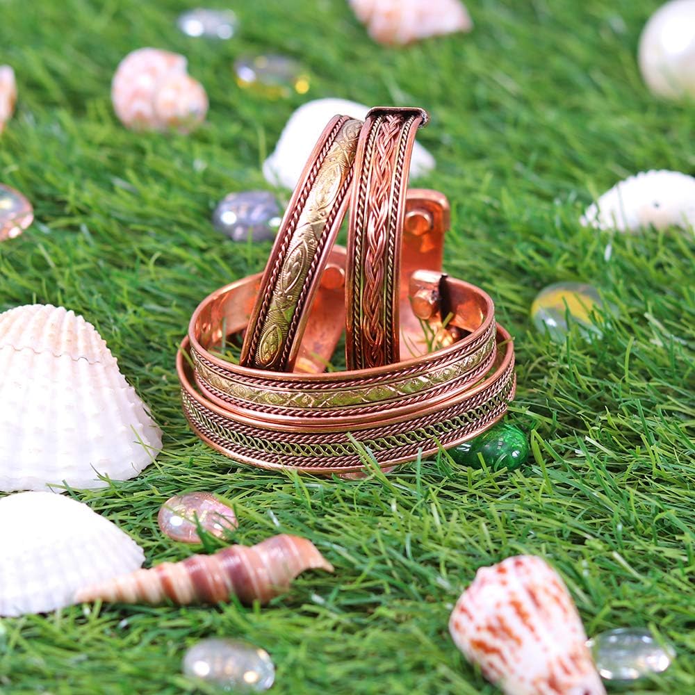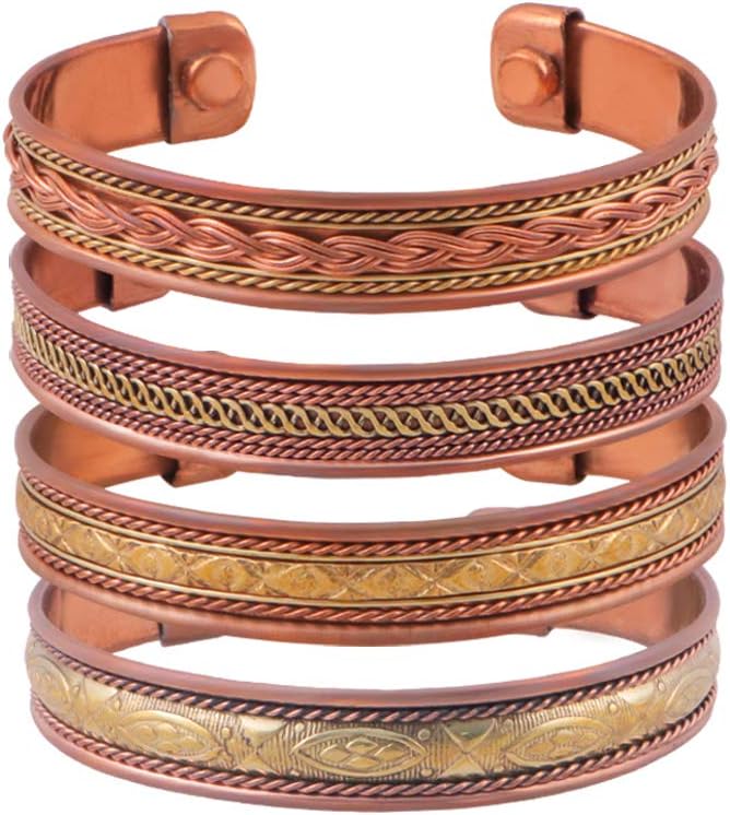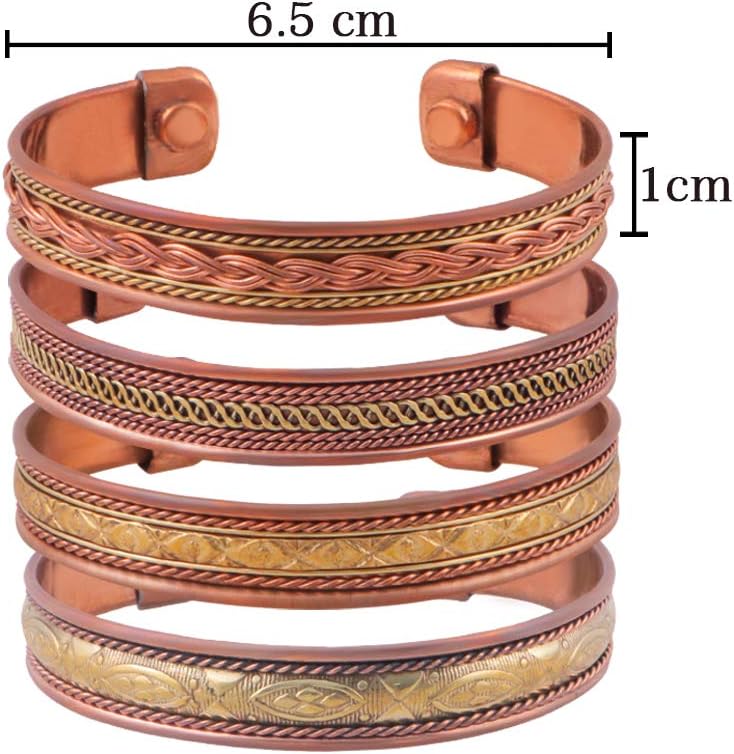 مجموعة من 4 أساور من النحاس المغناطيسي التبتي بتصميم جميل، هذه الأساور الرائعة ستكون إضافة رائعة لمجموعة مجوهراتك! سوار النحاس سوار رجالي النحاس النساء أساور النحاس