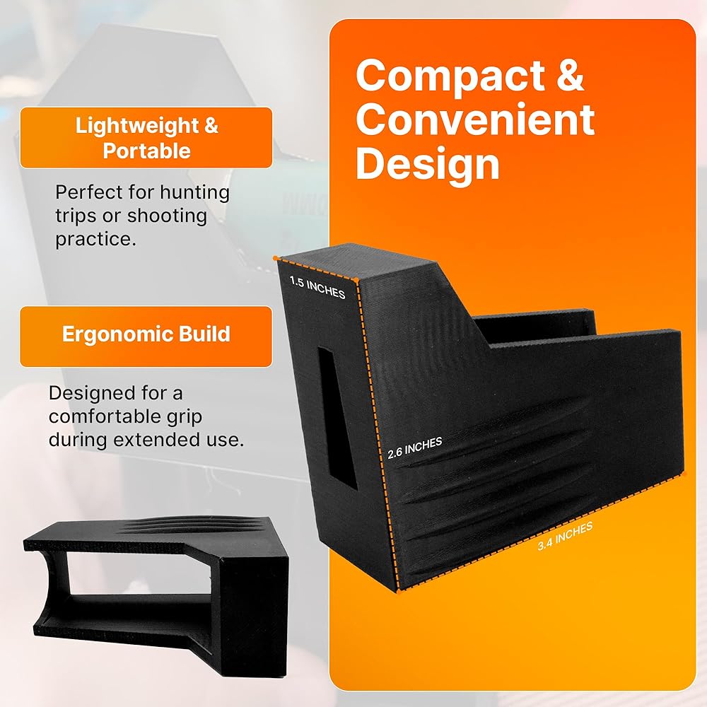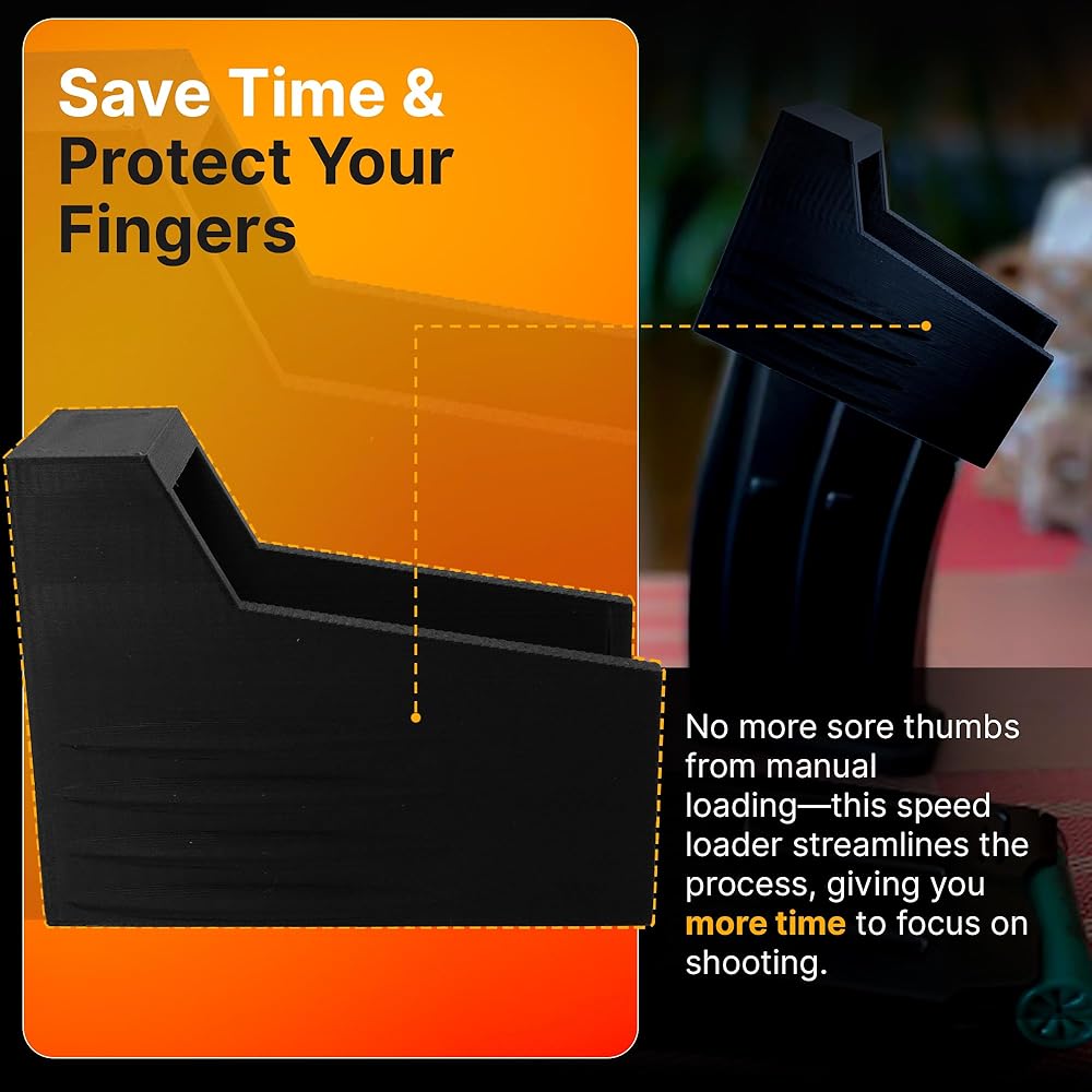 BUILT TO ENDURE HEAVY USE AND TOUGH CONDITIONS: Crafted from rugged, high-strength 3D Printed material, this speed magazine loader is built to withstand heavy use and harsh conditions. Its durable construction ensures long-lasting performance, making it a reliable accessory in your shooting gear.