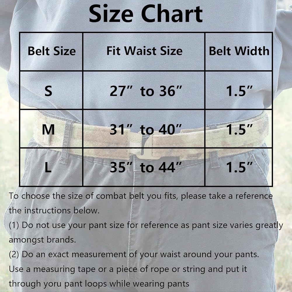 إغلاق بخطاف على شكل حرف G للحزام الداخلي للحلقة: الحزام الداخلي التكتيكي خفيف الوزن يحتوي على خطاف معدني على شكل حرف G. يمكنك ارتداء/خلع الحزام الداخلي بسرعة وبسرعة. مع ربط إضافي بخطاف وحلقة، يمكنك ضبط الحزام الداخلي ليناسب خصرك تمامًا. يحتوي هذا الحزام الداخلي على 3 مقاسات. صغير: 27 بوصة - 32 بوصة متوسط: 31 بوصة - 40 بوصة كبير: 35 بوصة - 44 بوصة