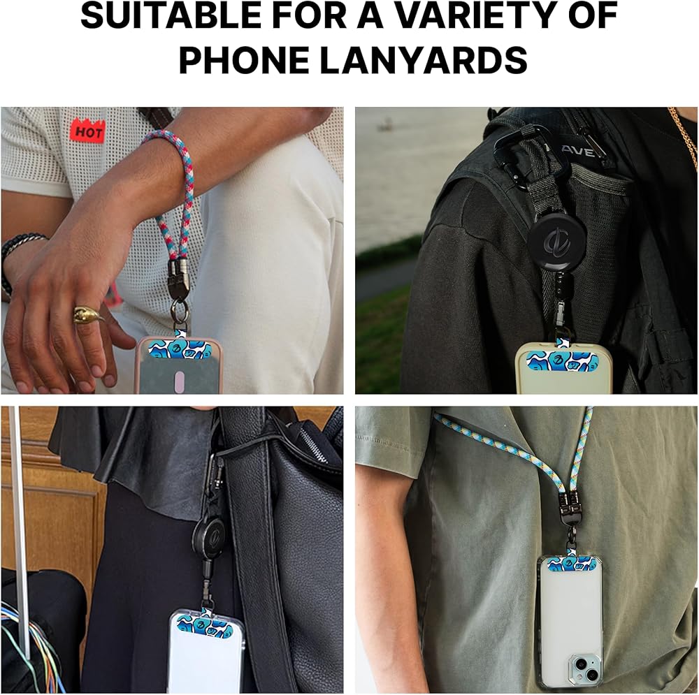 【ملاءمة عالمية 】تتوافق رقعة حبل الهاتف هذه مع معظم حافظات الهاتف ذات الغطاء الكامل. مثالي لهاتف iPhone 15/14/13/12/11/X/SE/8/7/6، وSamsung Galaxy S22/S21/S20، وسلسلة A، وسلسلة Note، وGoogle Pixel، والمزيد. يعمل مع حبال الهاتف، وأشرطة المعصم، والحبال، والسحر.