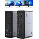 قاعدة توصيل كمبيوتر محمول 18 في 1 من TobenONE، 3 شاشات، شاشة عرض ثلاثية 4K مع 3 HDMI، 9 منافذ USB، جيجابت إيثرنت، PD3.0، لأجهزة الكمبيوتر المحمولة Windows/Dell/Lenovo/HP/Thinkpad (بدون محول طاقة)