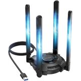 محول WAVLINK WiFi 6E USB للكمبيوتر المكتبي، محول AX5400 WiFi محول شبكة لاسلكي ثلاثي النطاق مع هوائيات عالية الكسب 2.4 جيجا هرتز/5 جيجا هرتز/6 جيجا هرتز، MU-MIMO، OFDMA، WPA3، يدعم Windows 10/11 فقط