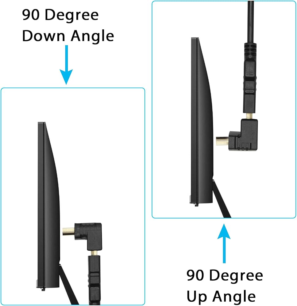 • 【Durable Materia】90 Degree HDMI gold plating plug, anti-interference and anti-oxidation, ensuring stable signal transmission.