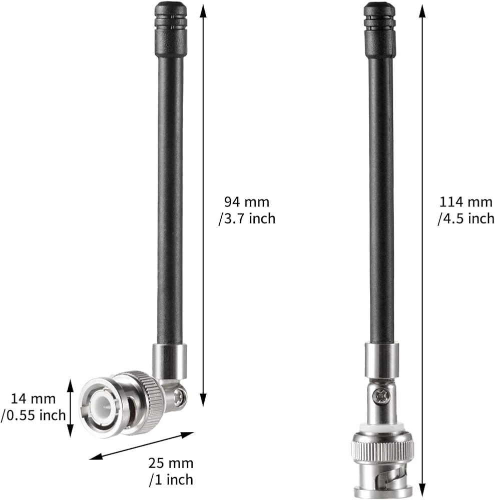 - Frequency Range: 470 to 752Mhz; Antenna Connector: BNC Male ; Antenna Length:11.4cm/4.5inch;